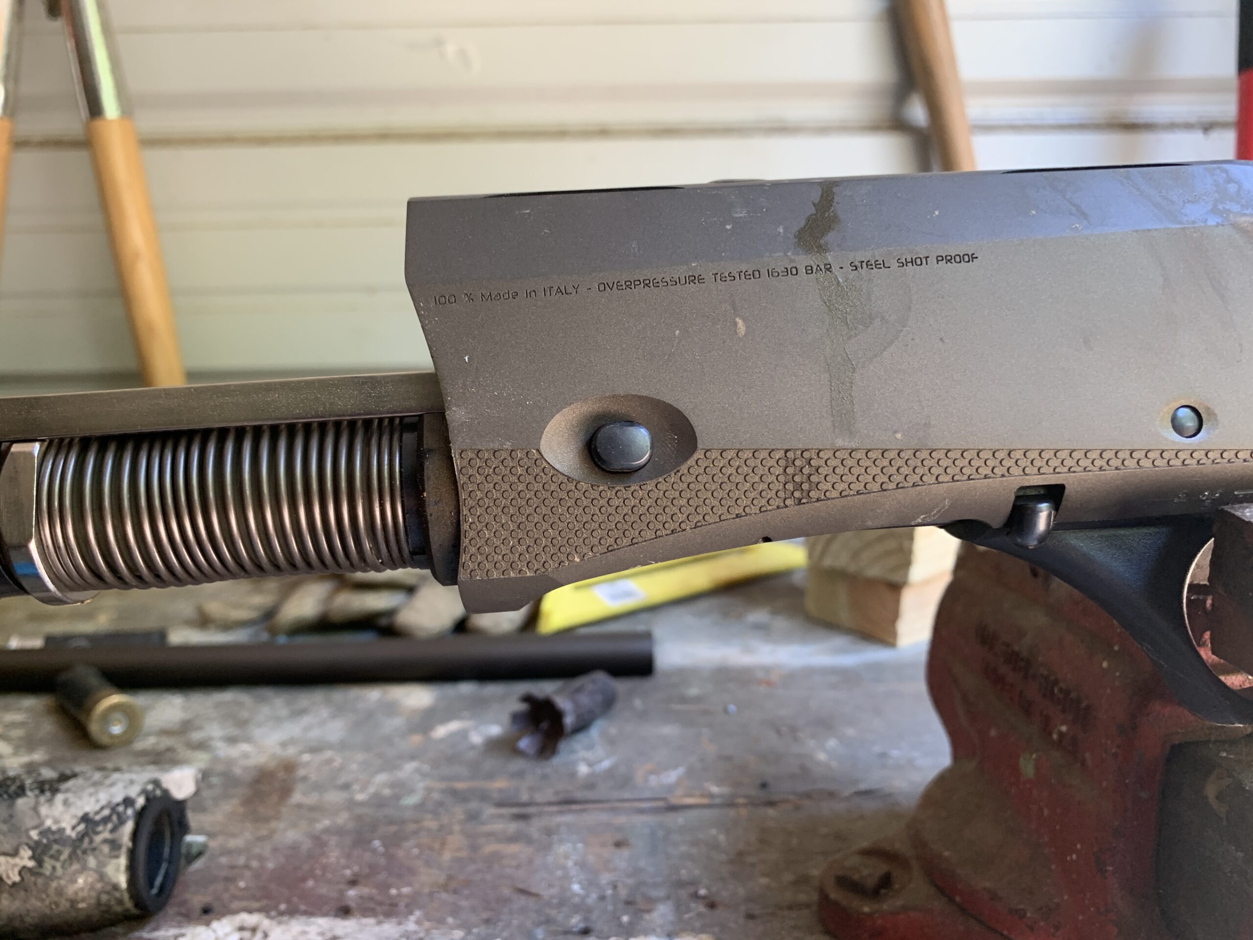 When I picked the Chesapeake up at the gun shop it was in two pieces. The first thing I noticed while putting it together was the quality of the thick steel chromed action bars that drive the bolt rewards after the proper amount of gas is bled from the barrel. There are some equally expensive gas driven shotguns that rely on a much cheaper plastic tube that slides over the magazine, so it was impressive to see such attention to detail on a part that is integral to the gun’s operation.