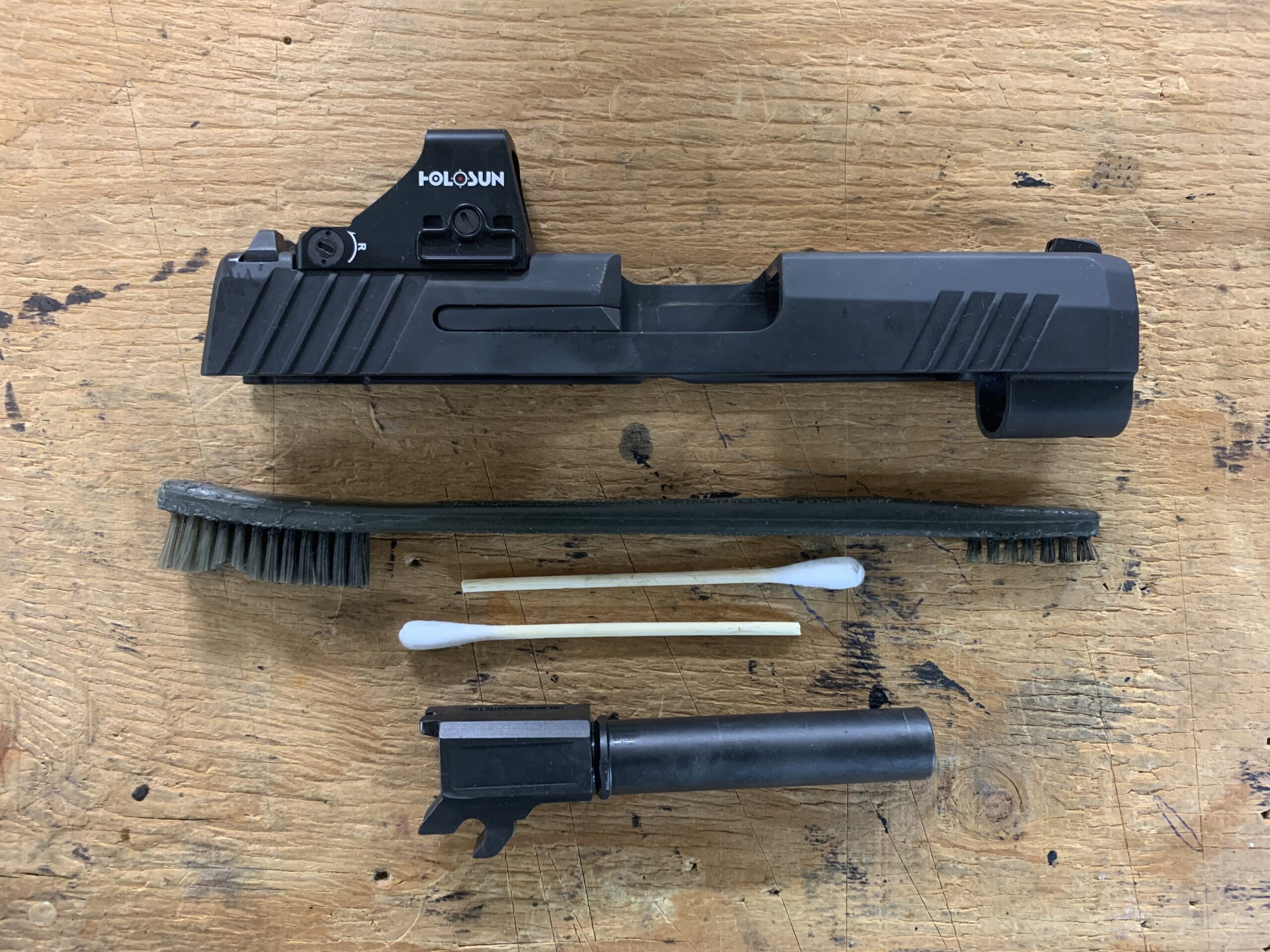 When cleaning the slide, avoid getting excess solvent into the striker or firing pin assemblies unless you are comfortable taking them apart for a deep clean. For general cleaning purposes, they don’t need to be disassembled.