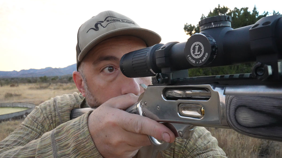 To get the most potential out of the lever gun—I’m talking 300 yards and in—I mounted a Leupold Mark 6 1-6×20 on the rifle’s picatinny rail. This is a first focal plane scope with Leupold’s TMR-D reticle. It comes with low-profile locking windage and elevation turrets that adjust in .2 mil increments.