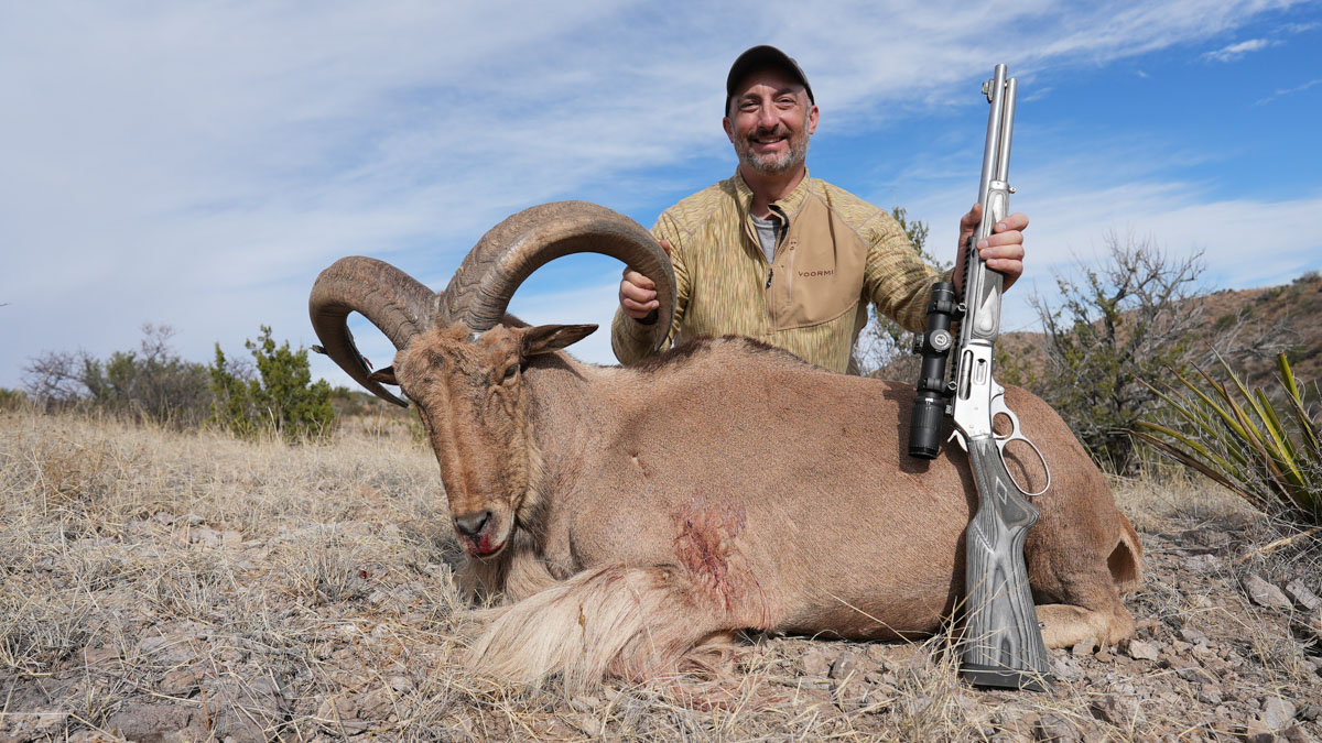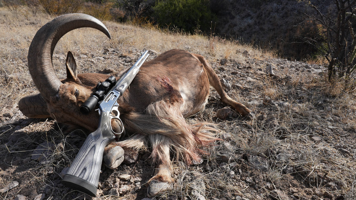 For hunting in thick timber and brush, the rifle’s ghost ring sights are an excellent option, but I was taking the Marlin to west Texas to hunt aoudad near the Chinati Mountains. This is open, steep country and longer shots come with the territory.