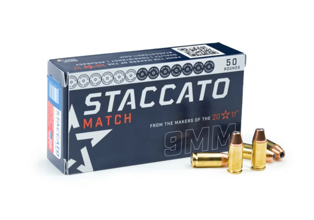 Staccato 2011 has expanded its market reach tremendously since their rebranding from STI, and they’re now loading their own brand of high quality range and match 9mm ammo. Their match load features a 125-grain Hornady Action Pistol bullet, and has been developed for both excellent accuracy and optimal performance in 2011 pistols. This ammo is loaded by Staccato, right here in the USA, and they’re hanging their hat on it being a top performer for both accuracy and shootability.