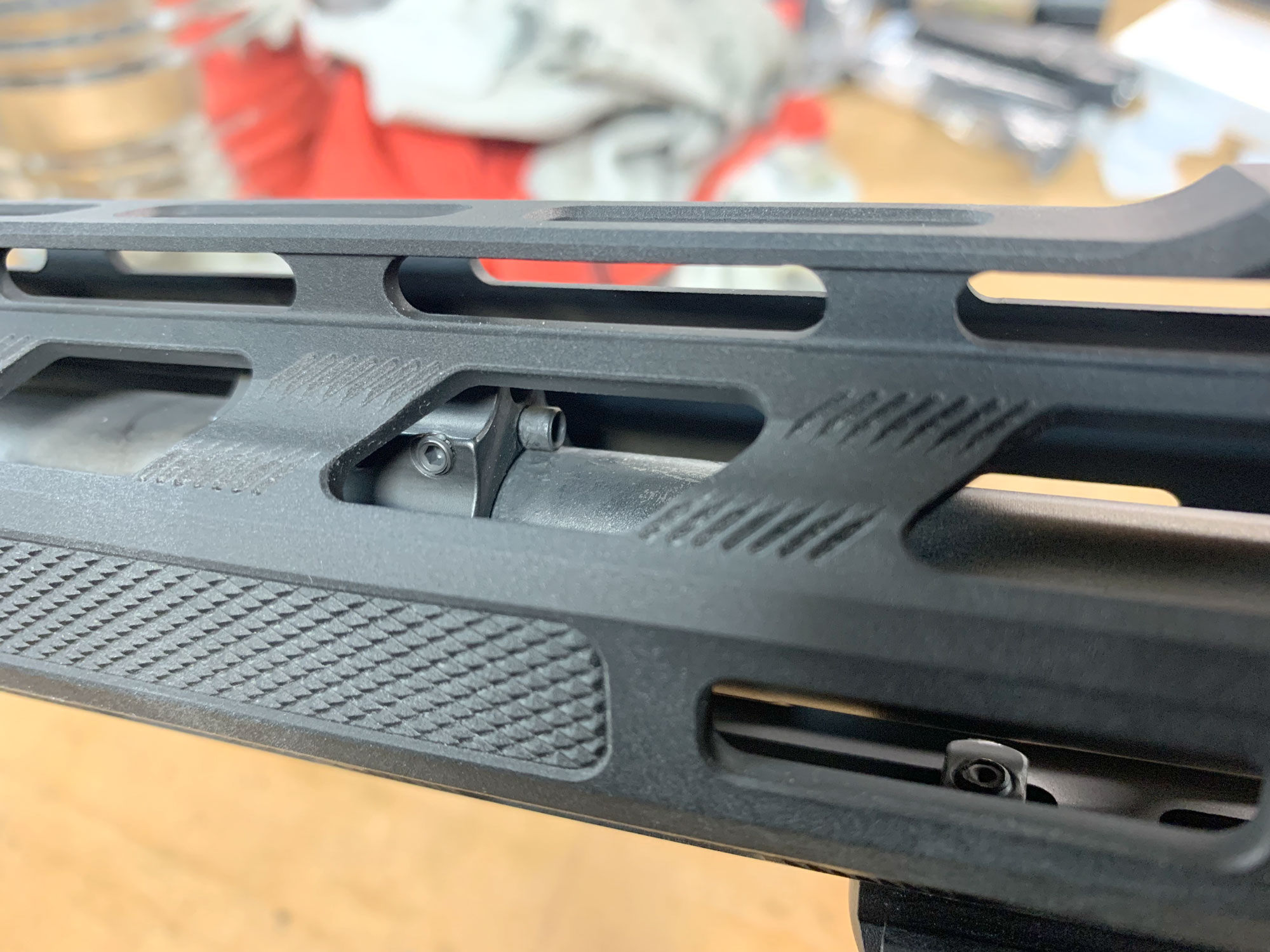 The rifle came with a guide for tuning the gas system, with the adjustable gas block set at the factory-recommended setting. A gas block is a part that slips over the barrel to direct gas up from the gas port drilled into the barrel, and back through the gas tube to cycle the action. An adjustable gas block of this style has a set screw that can be screwed in or out to regulate the flow of gas back into the receiver. This gas adjustment screw is down under the handguard, and the rifle comes with a long Allen key for turning it. On my first trip to the range, I left it on the factory setting. The rifle cycled well, so I left it alone — something the average shooter will do.