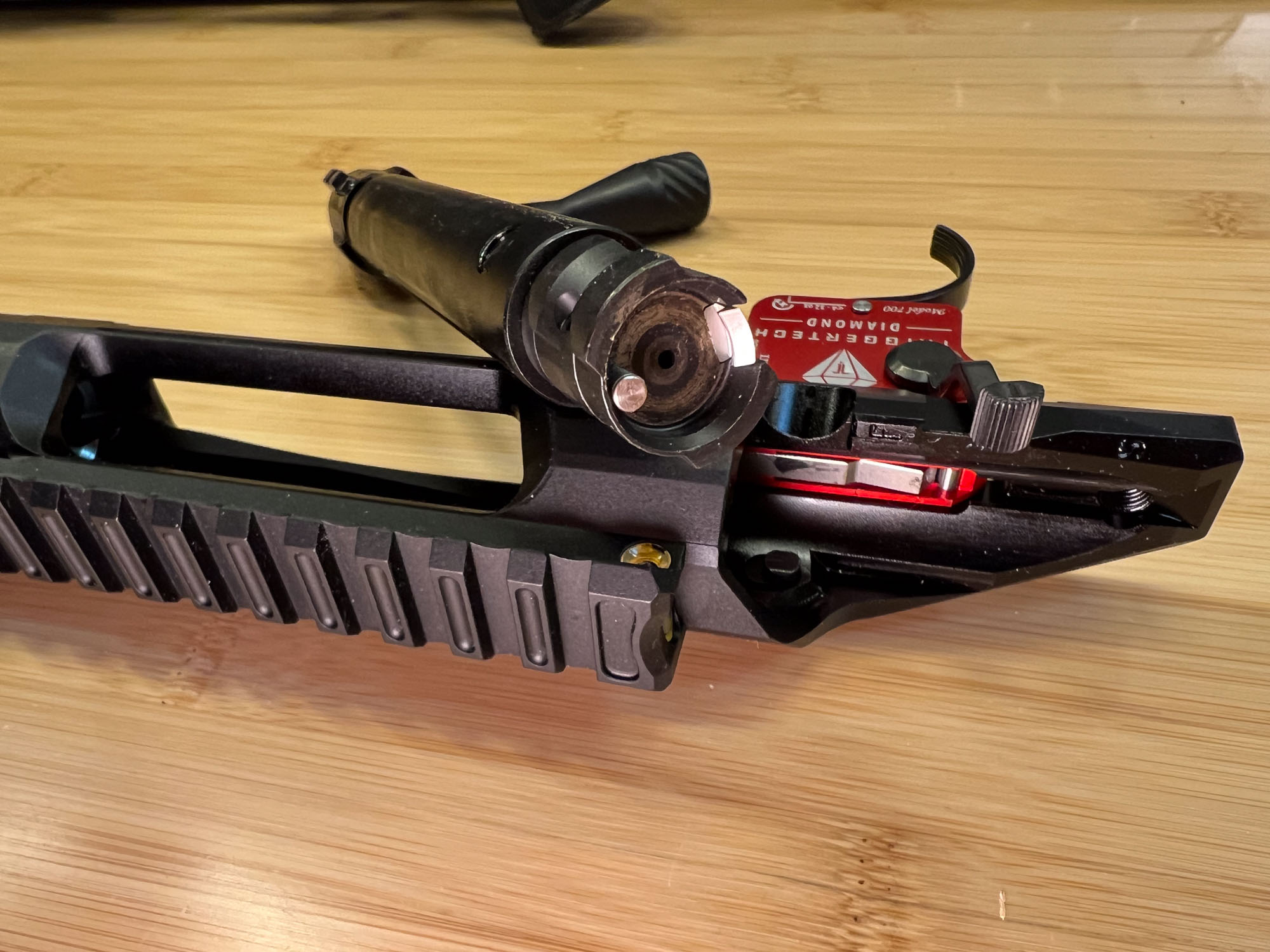 - Trigger: TriggerTech Diamond, 1 pound 15 ounces (measured)