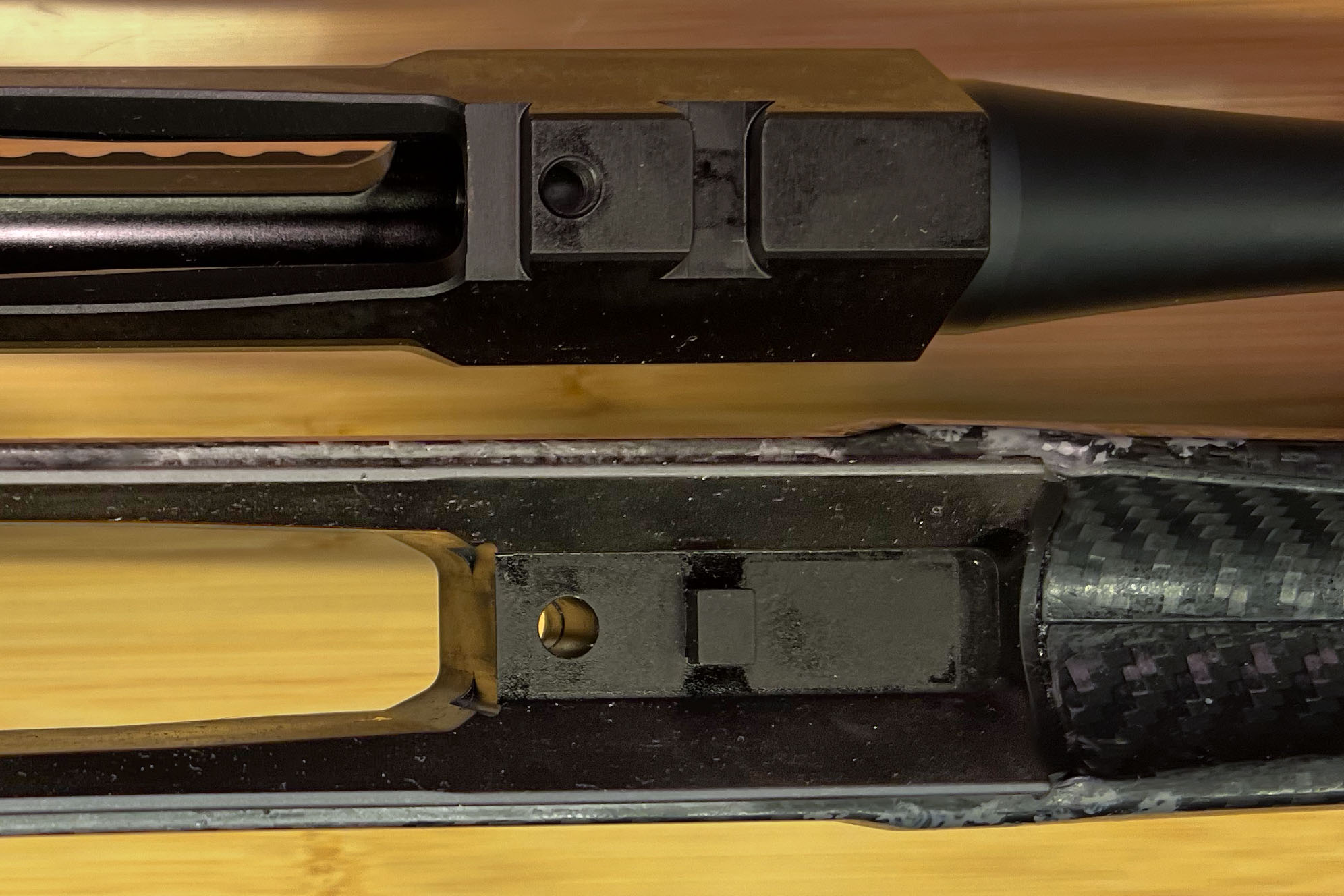 Part of the reason for the Seekins Havak Slam’s accuracy is how the action and stock join. The foundation of the stock is an aluminum bedding block around which carbon fiber is laid. That bedding block is broad and flat at the front of the receiver and has a good sized flat at the back as well.