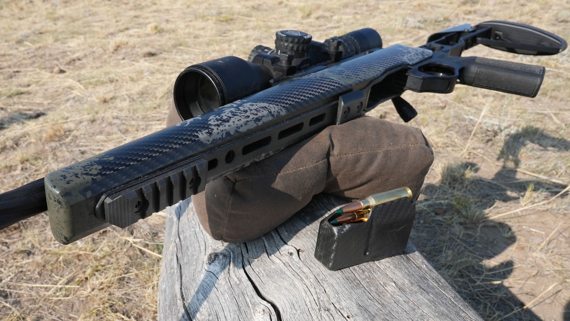 The magazine is just a wisp of a carbon-fiber shell that looks like it was fashioned for Formula 1 racing rather than a hunting rifle. It is a cool design that Seekins created years ago for their earlier Havak rifles and is surprisingly tough and durable despite its featherlight construction.