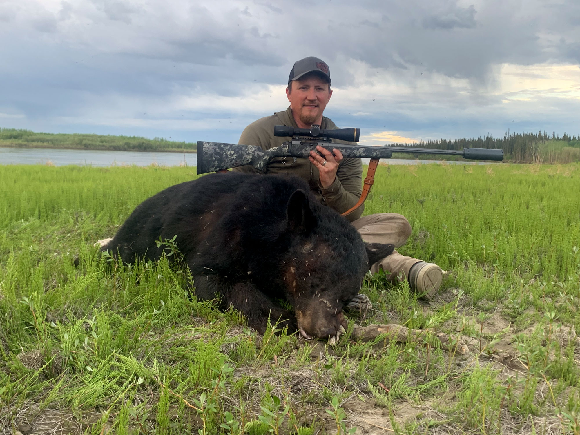 I took the rifle on a remote bear hunt using Hornady’s 143-grain ELD-X Precision Hunter load, making sure to only keep three rounds in the magazine, so it would feed the first follow-up shot from the right side. Normally, I have plenty of time to chamber a round when I settle in to wait for a bear, but not this time. One mid-afternoon, I nosed the boat into the bank at one of our bait sites, and as my dad was fixing to tie us off, I saw a huge black bear head appear over the crest of the sloping bank — about 15 yards above us.