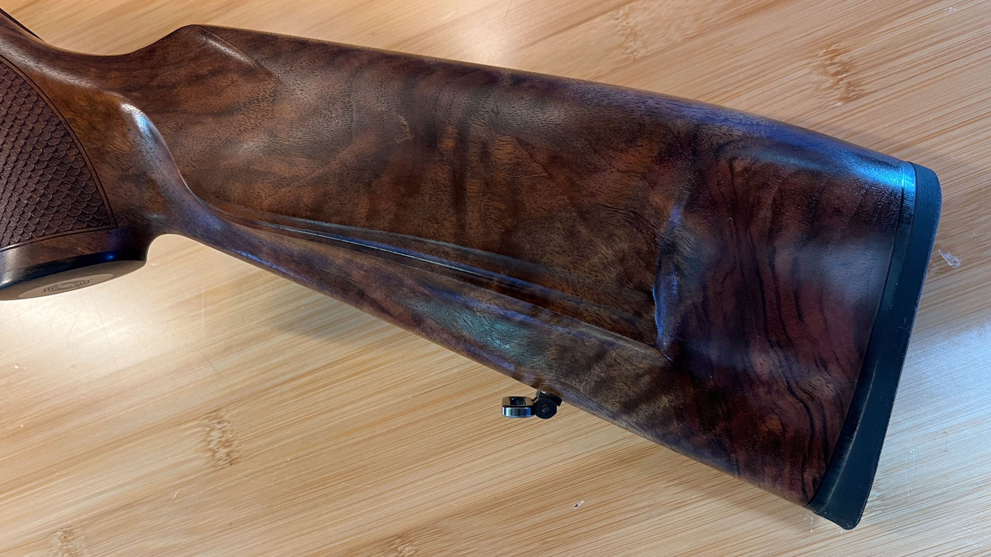 The butt is fitted with a thin rubber recoil pad that is effective and looks good. It is joined to the stock with a thin spacer and shows a high level of craftsmanship for how well it is fitted to the wood.