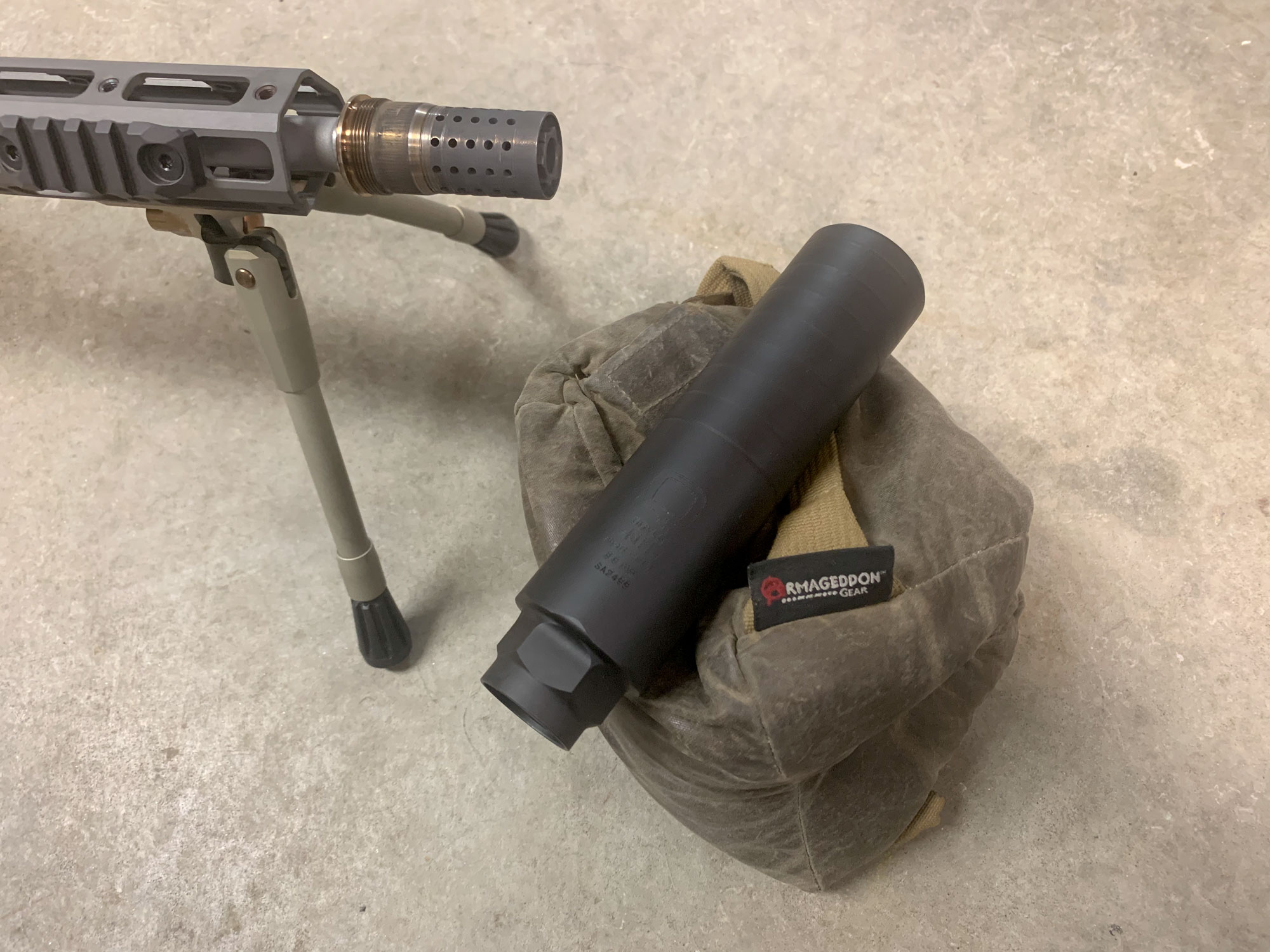 The 1.75-inch-diameter tube has similar volume as many .308-caliber cans, which are most often 1.75 inches in diameter too. It’s a sealed suppressor, but I can see that the baffles have vents to allow some gas movement between chambers. All this makes it quite pleasant to use. I like that the over-brake design doesn’t result in any significant length added to the system. Even on the end of a normal-length rifle, the can is unobtrusive.