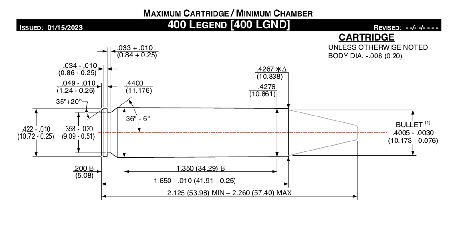 You might ask; since this is the same diameter as the .40 S&W does it shoot the same projectiles? The answer is no; Winchester has designed all-new projectiles especially suited to the 400 Legend’s velocity and expected deer hunting distances. Theoretically, any suitably shaped .4005 diameter bullet would be useable for handloading in the new 400 Legend, however for optimal lethal performance on deer sized game you’ll be well advised to use a bullet specifically designed for that purpose.