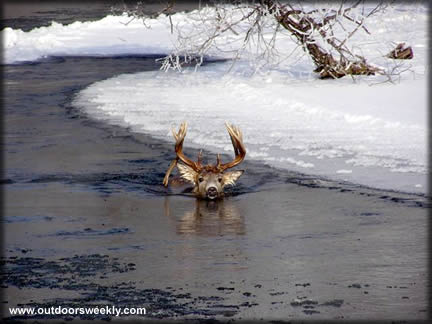 Deer are good swimmers, but this buck looks really cold. I wonder if he fell in or jumped in on purpose. Luckily, the big droptine buck made it out.