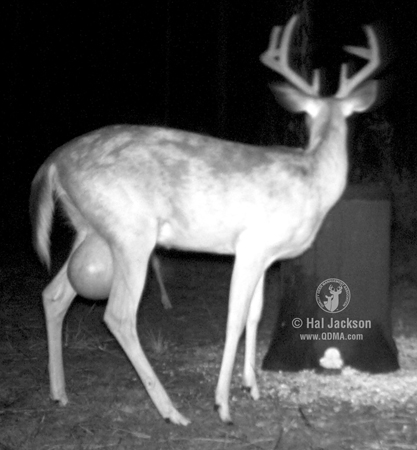 This buck was photographed feeding and moving about normally, in spite of its obvious problem. A wide range of potential causes could be involved from injury to infection.