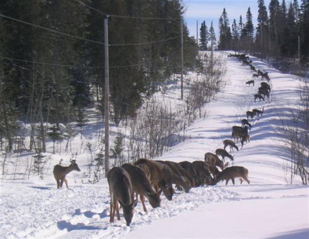This photo comes from Maine, where the deer use snowmobile trails for easy walking in the winter.
