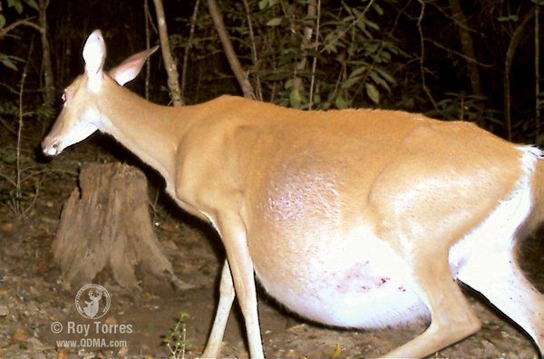 While it’s likely this doe is, or was, pregnant, the amount of swelling appears excessive even for triplets and suggests complications.