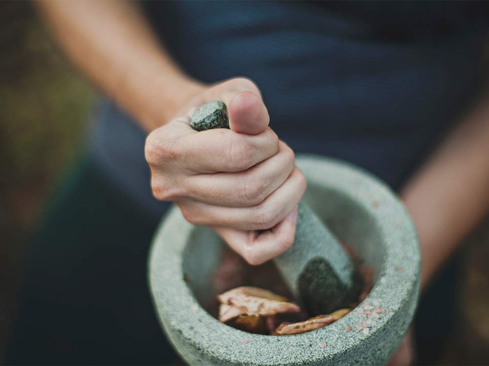 While it’s not the ideal ingredient for making your own homemade medicine, bourbon can be used instead of clearer liquor to create medicinal tinctures. Select a glass jar with a tight-fitting lid (preferably a wide-mouth jar). Cut, crush, chop, or otherwise break up the dried plant material you wish to use, and then pack it tightly into the jar. Pour enough bourbon over the medicinal herbs to cover them slightly, and then put the lid on it.