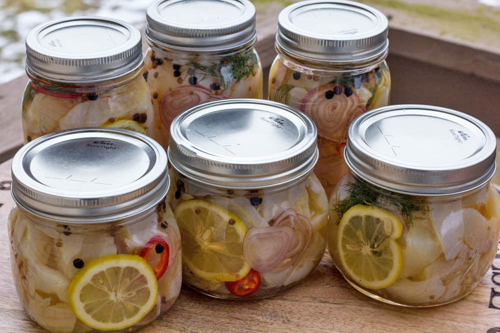 It doesn’t take many pike to make a meal, though some people don’t like to cook pike at all because of the many Y bones hidden in the fillets. Even though there are a couple of different filleting techniques for taking out the Y bones, some fishermen simply don’t like to mess around with it. That is why many folks like to pickle pike—the final result is delicious and the pickling process softens the bones to a state where you don’t even notice they are in the fillets. Here’s how to do it: