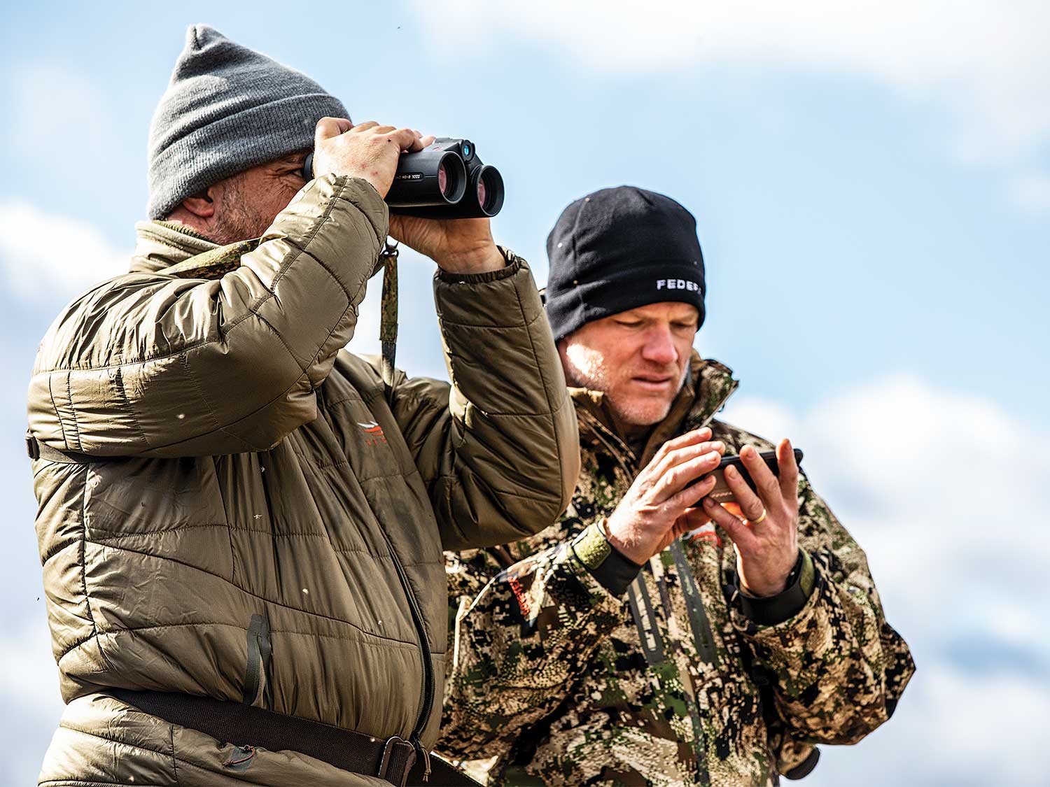 On this hunt, Jason and I were both carrying .30/06s. My rifle (above) was built for the elements. I used a stainless Shilen DGR action and Shilen barrel with a Manner’s EH-1A stock and topped it with a 2.5–15×44 Maven RS.1. The rig handled the cold and wet without any problems.
