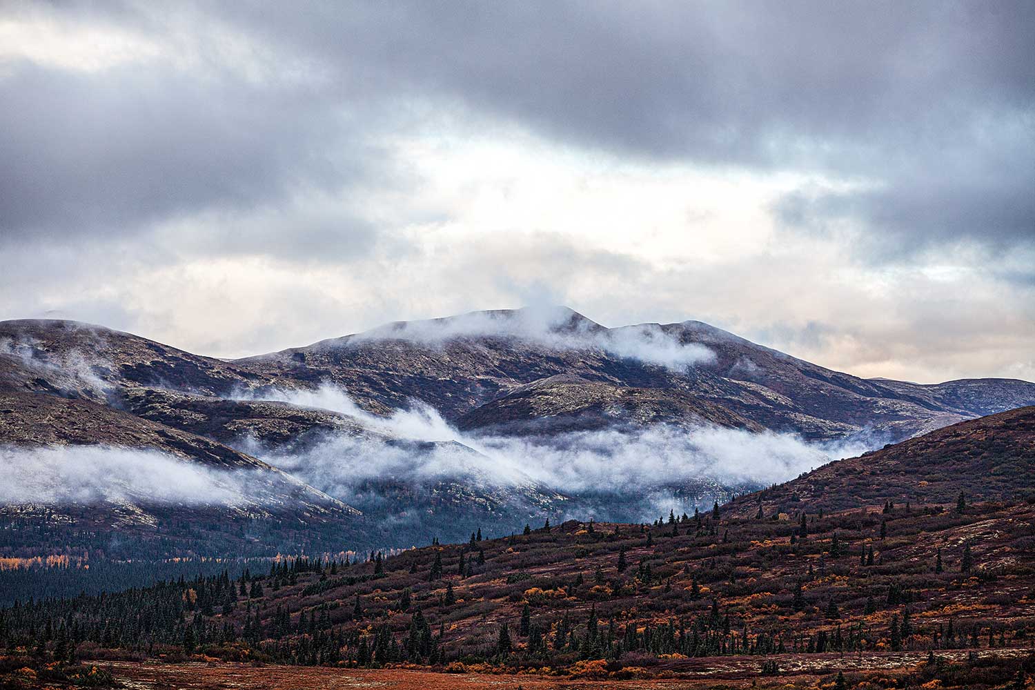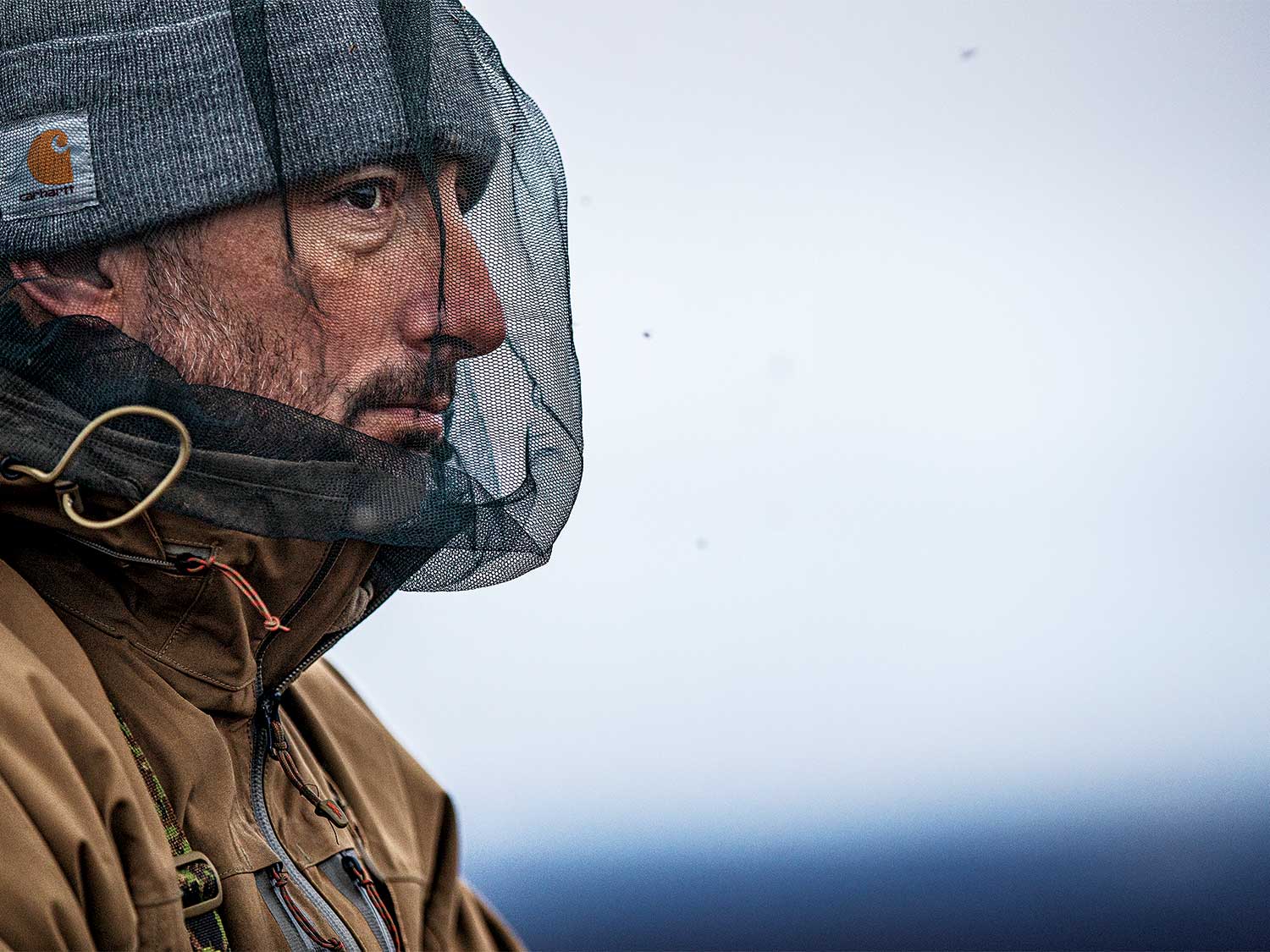 The wind picked up, and fog and rain rolled in, which cut our visibility to a couple hundred yards but provided relief from the swarms of tiny black flies that pounced whenever the breeze died. We had Thermacells to help with the mosquitos, but they didn’t dissuade those psychotic little bloodsuckers. Only our full-face bug nets and a liberal dousing with pure DEET kept them at bay.