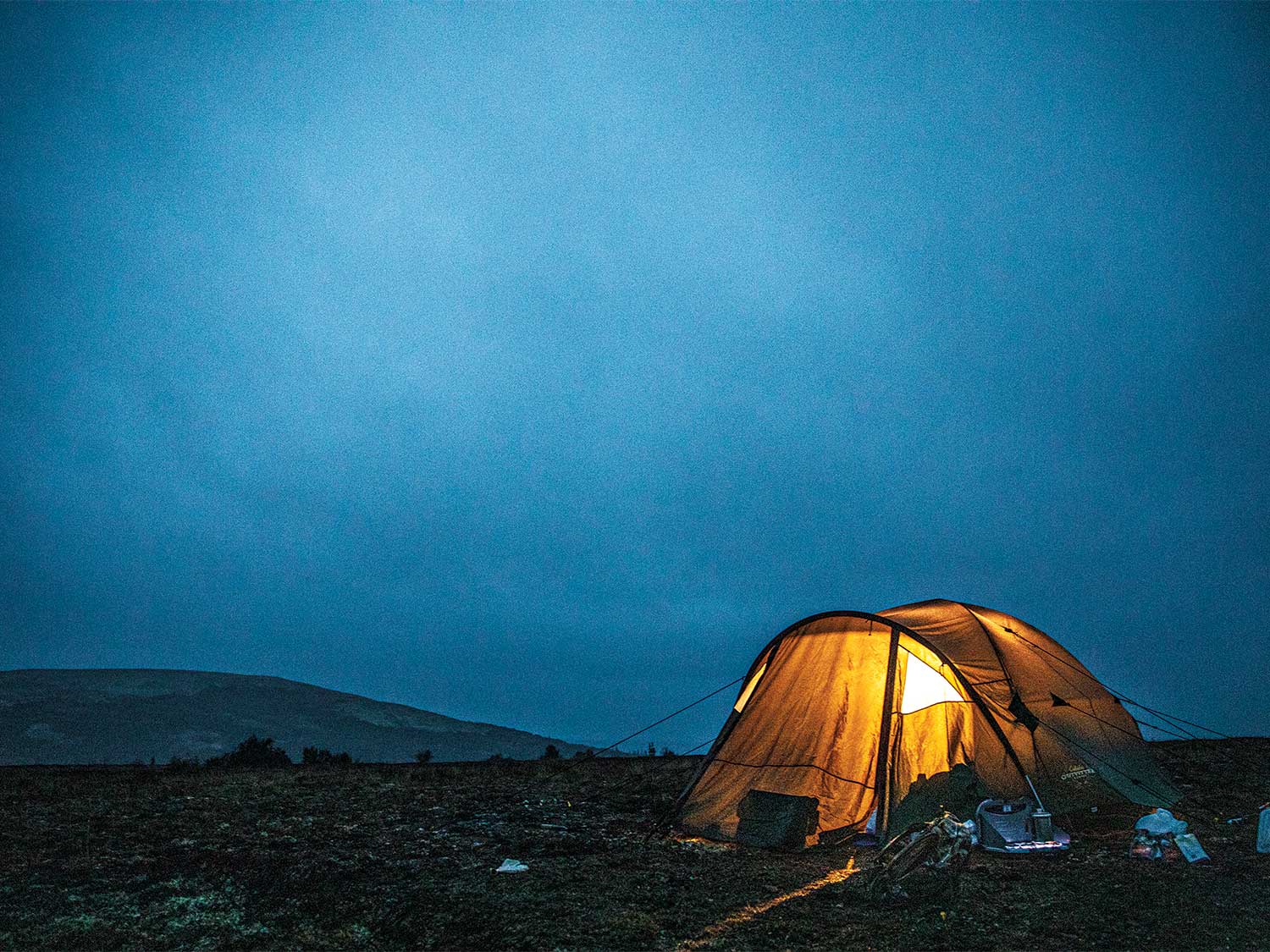 At night, our tent offered a fragile haven from the elements, rocking back and forth like a ship in the violent winds that Werba had predicted. The lantern above our heads created a small pocket of warm air at the top of the tent, and we hung our wet gloves and socks around it each night in the hopes they would dry. Much of our conversation turned to how best to stay warm. We stuffed the edges of our sleeping bags with extra clothes, and I started wearing my down jacket as I slept, even though it, too, was wet.