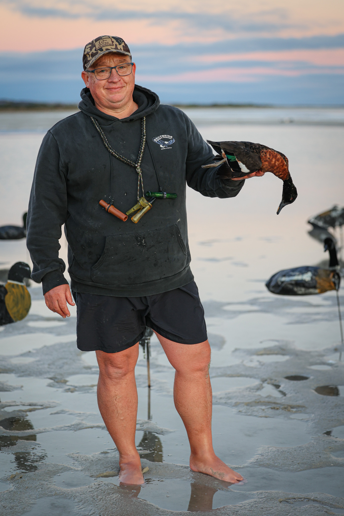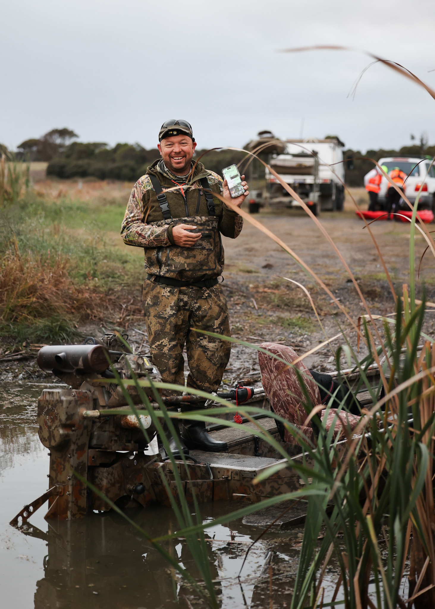 But even the most onerous regulations and inevitable anti-hunter harassment are not enough to keep hardcore hunters like Falla and his buddy Trent Leen off the marsh. Leen, the owner of Australia’s other mud boat, was the unfortunate host of the two kayakers who left our decoys in search of his. Leen is a Field and Game board member, and says he’s often targeted by activists who are hoping to catch hunting-community leaders making a mistake.