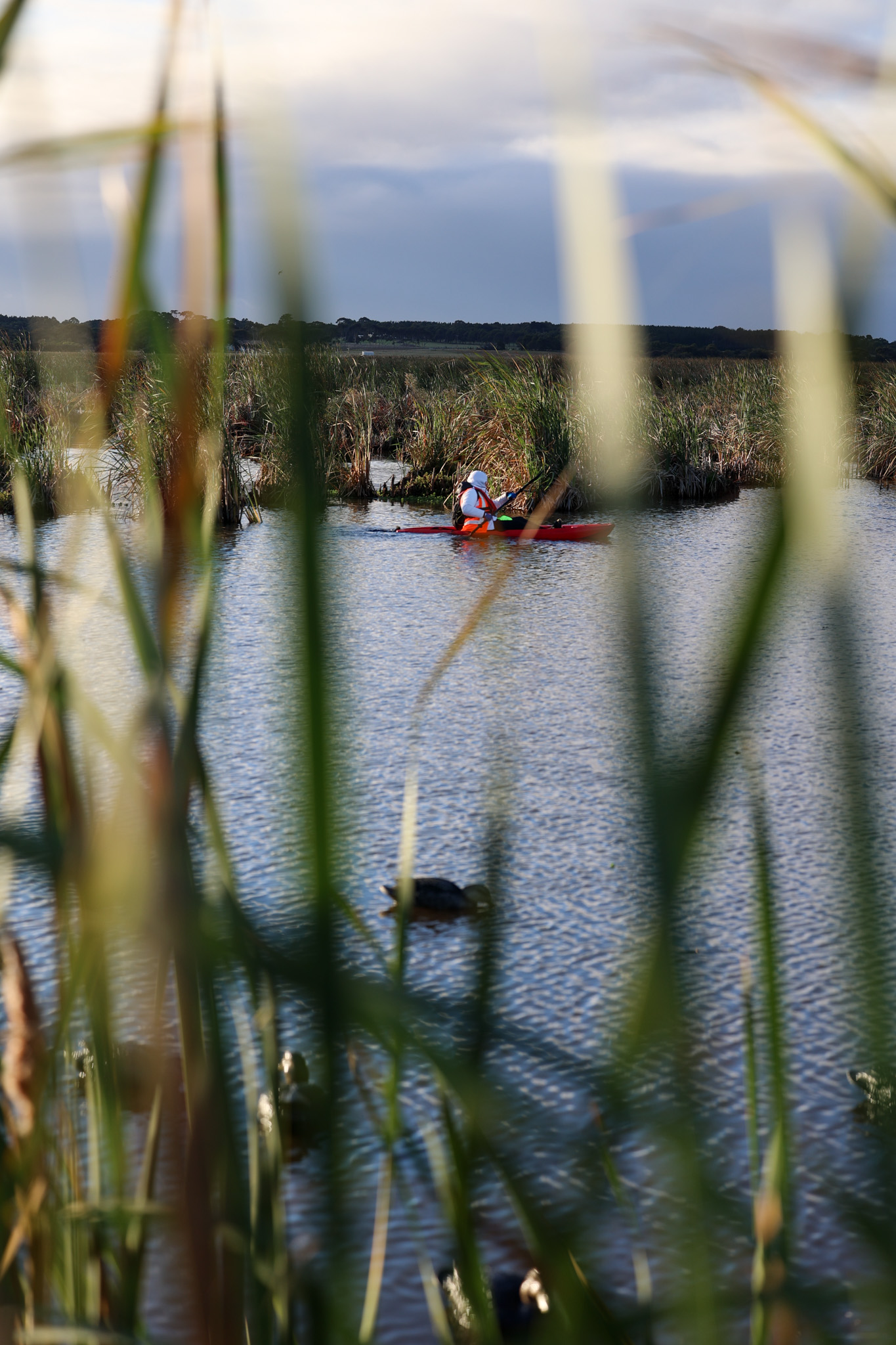 When I point my 200mm camera lens at the two activists — now about 40 yards away — they spook. They adjust their face coverings and turn their backs, slipping into the reeds and paddling deeper into the marsh in search of our buddies, who are set up about 100 yards away.