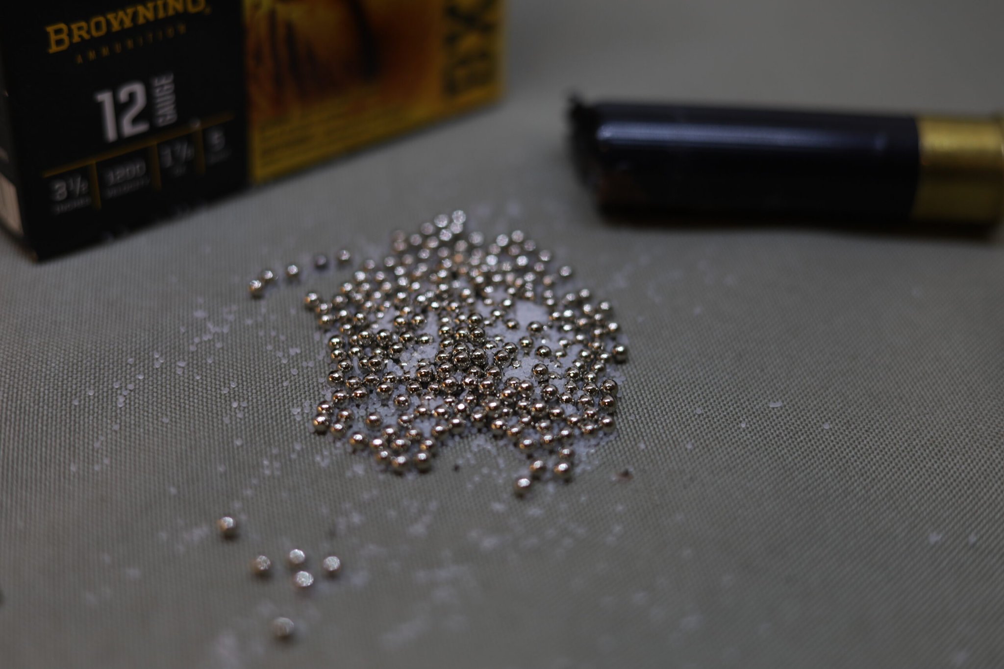 Bismuth is also a good shotshell option. It has a higher density than lead at 9.7 g/cc, and more ammo makers produce it than TSS, namely because it’s cheaper. There are a wide variety of waterfowl and upland loads that are straight bismuth and some that are a blend of bismuth and steel. BOSS, Rio, Kent, Federal, Hevi-Shot, Browning, and Winchester all make a bismuth or a steel/bismuth blended load. Bismuth 5s and 6s will kill a longbeard, but again, temper your expectations with regard to shot distance. Blended loads will require that spring gobbler to come a few steps closer.