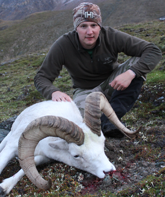 Dall sheep are found mainly in Alaska and the Yukon, and the very dark Stones from central British Columbia north into the Yukon. Where the two colors overlap, most of the sheep are varying shades of gray, sometimes with dark saddles. Years ago these “saddle backs” were thought to be a full-fledged species, and were called the Fannin sheep. But now, in this section of the continent, all but the pure white ones are called Stone sheep by sportsmen. I was hoping to get a fairly dark animal, but I was concerned mostly with trying to get a very respectable head. And while I wasn’t dead set on a record, no hunter can help hoping one will come his way.