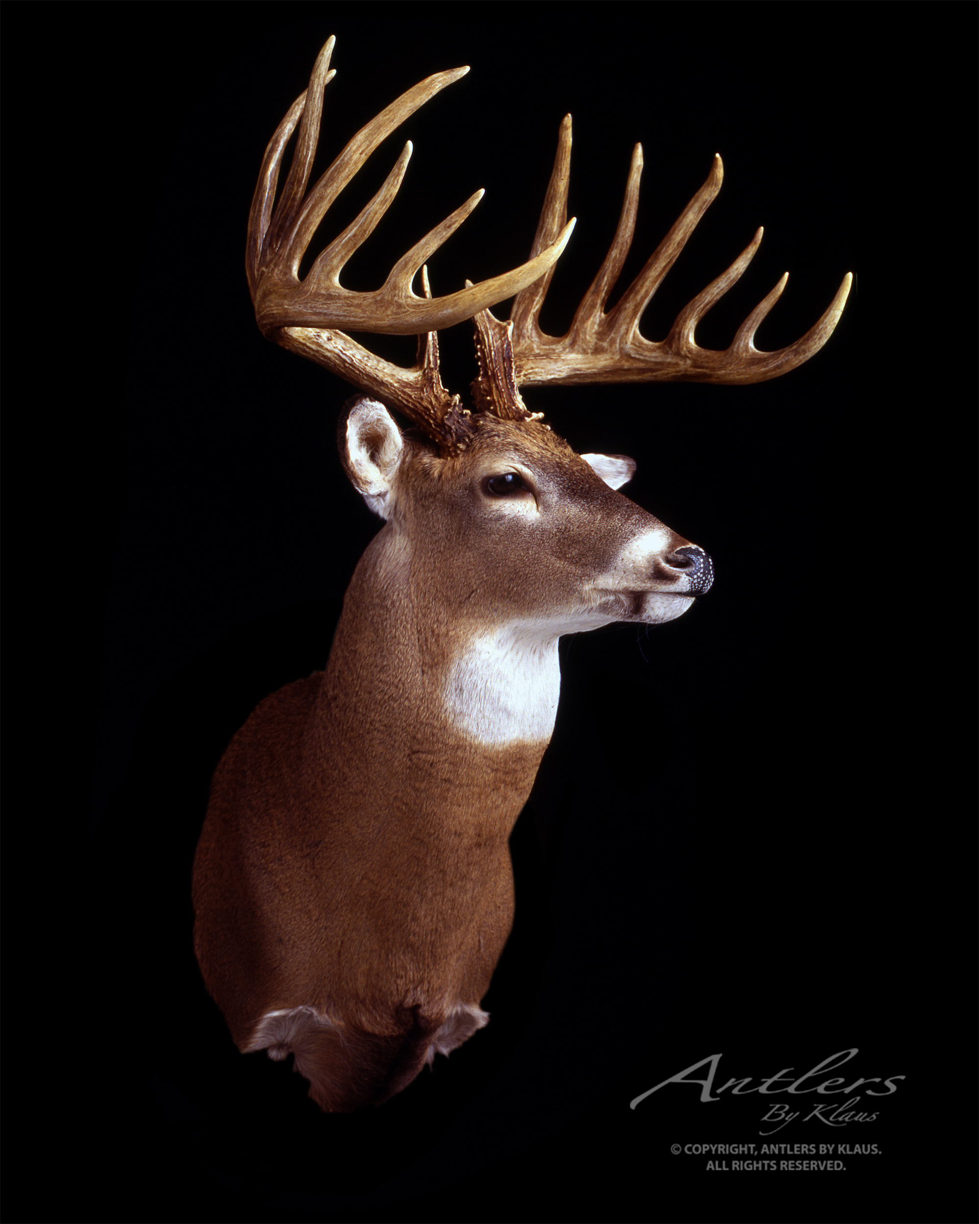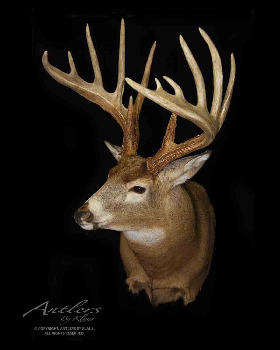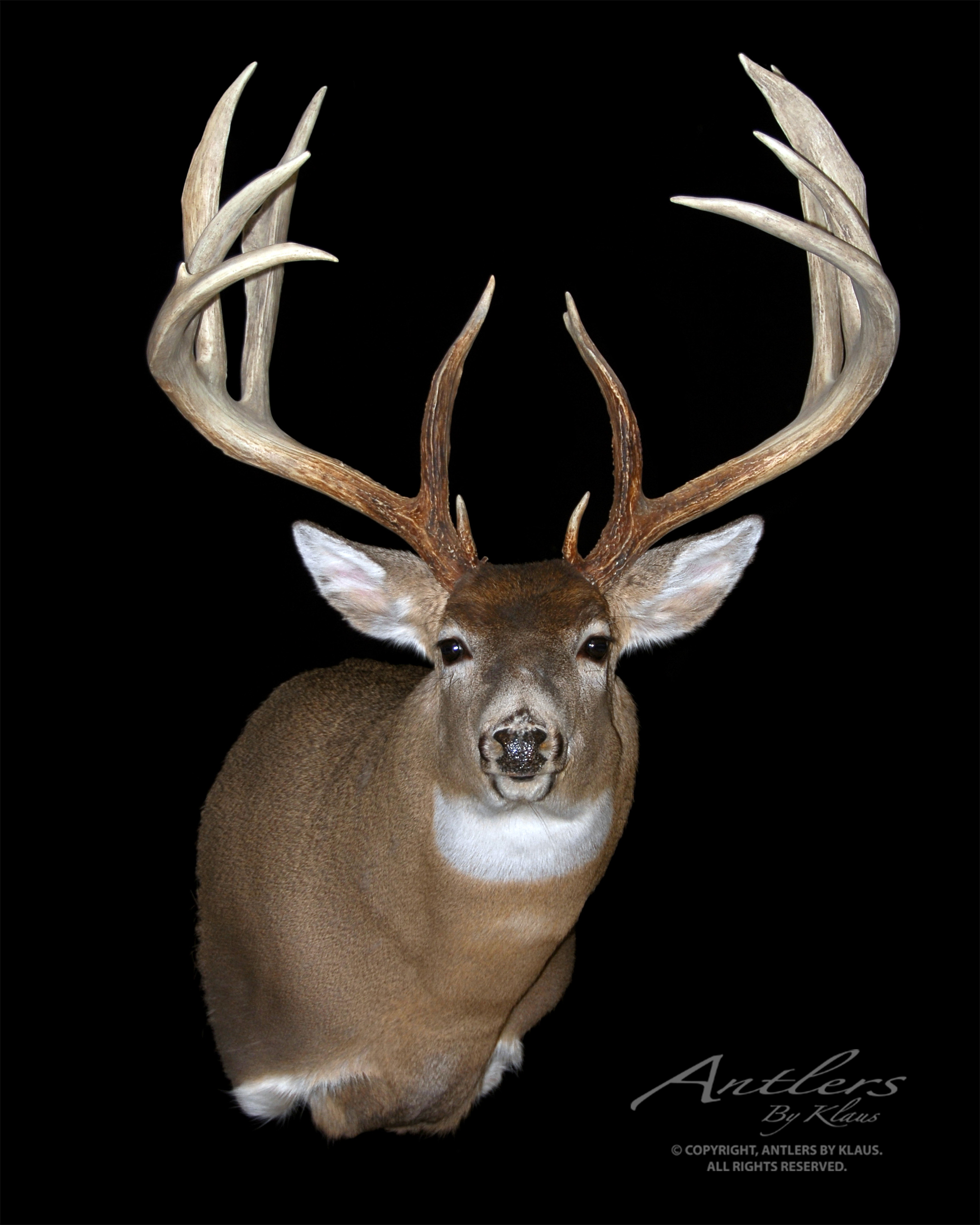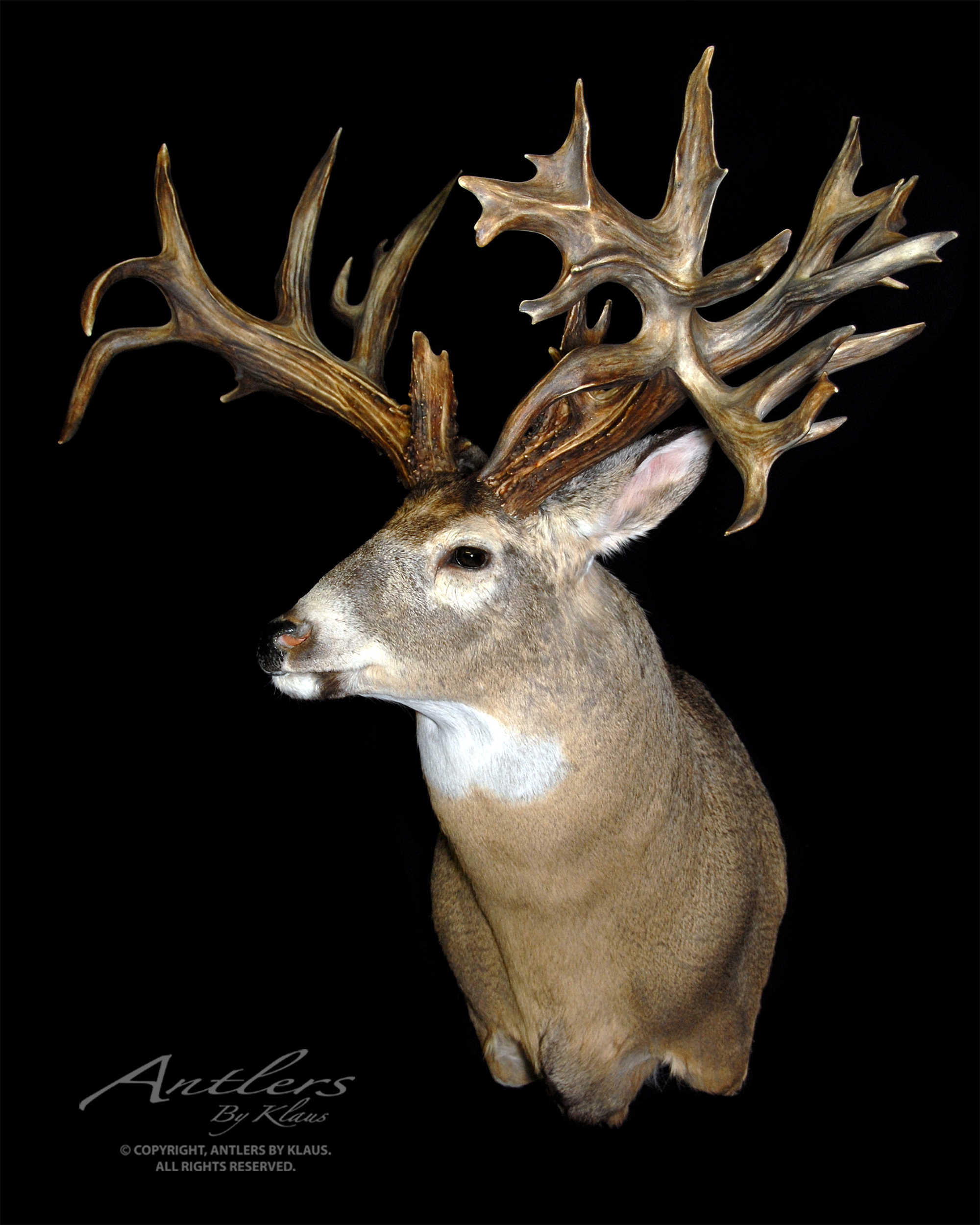 With an estimated spread of 21 7/8 inches, and a score of 232 inches, according to Klaus, the Knife-Handle set is a massive typical. Incredibly, half the left side was lost for nearly 40 years. It was believed to have been cut up into knife handles and gone forever. But in 2012 Klaus Lebrecht located the lost shed, and now the two are reunited. While it has a couple oddball points, this mostly typical whitetail is one of the largest racks on record. Unsurprisingly, it was picked up in Iowa.