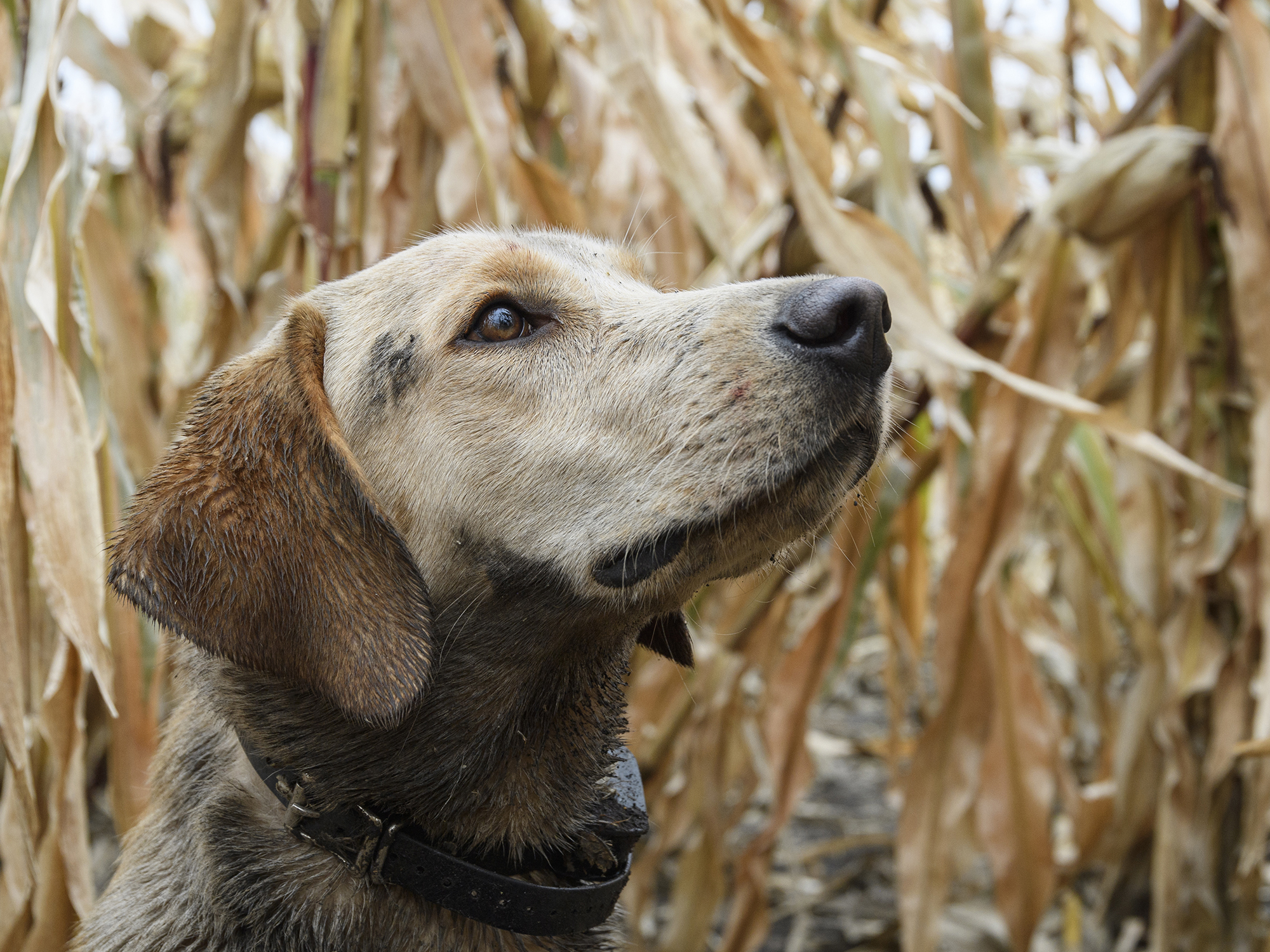 Instead, Hatchet and I are anchoring a line of three shooters plus two guides in a thawing North Dakota cornfield. We’ve already whiffed on a few teal. The setup isn’t bad: We’re hiding in standing corn beside a seep peppered with full body and floating decoys. Hatchet’s been heeling in paw-sucking slop for nearly an hour, trying to keep his footing in the cold mud as he looks for the ducks he can hear but not see above the cornstalks.
