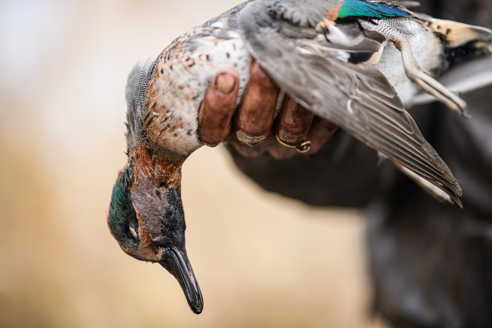 He launches off my lap, hard enough to topple the chair if it weren’t sunk in the mud. Instead, I get a perfect view of my dog beelining for his first duck. He sniffs the teal once, twice, then gathers it gently into his mouth and trots back. I meet him at the water’s edge, but I don’t take the bird. I just let him hold it a minute, still not troubling to keep my voice down as I tell him what a good boy he is.