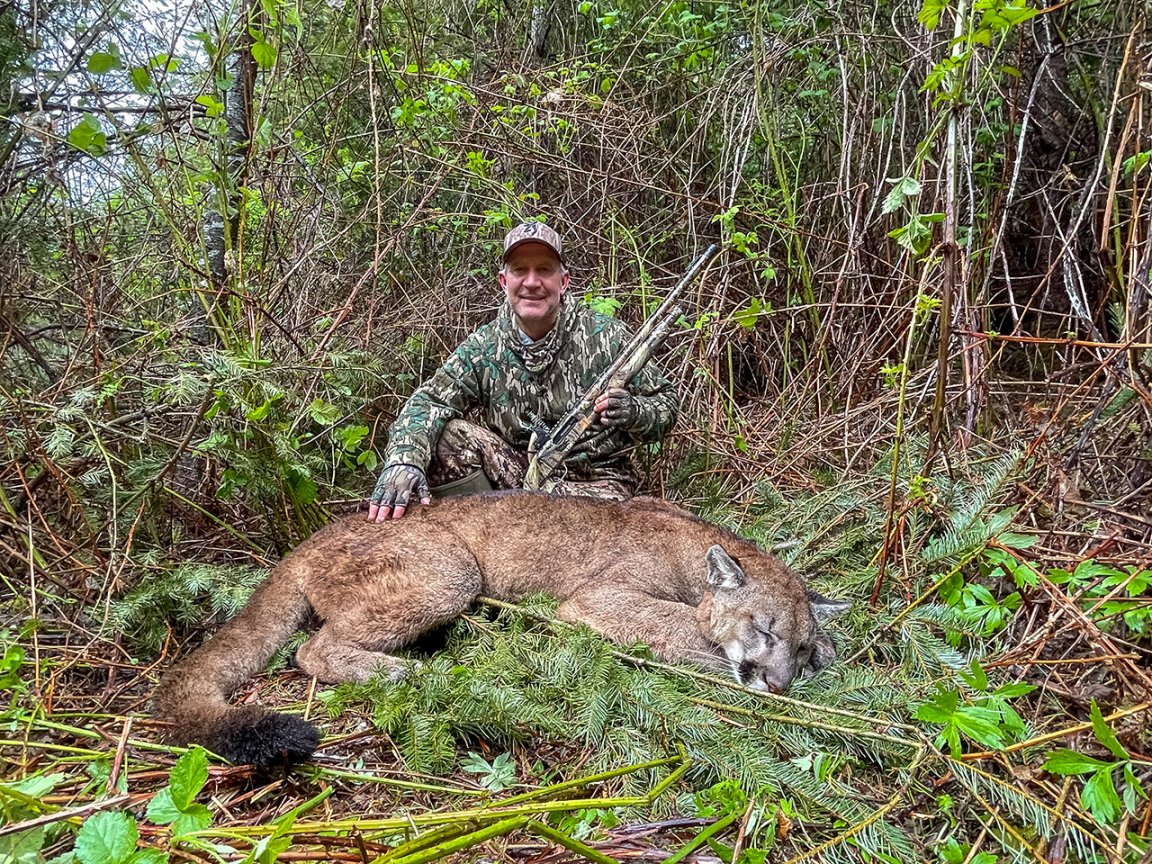In Oregon, cougars are classified as a big game animal. If you find a cougar kill you can uncover it to inspect it, but the carcass cannot be moved. Neither can it be chained to a tree or tampered with. Cougars can’t be hunted at night in Oregon and, of course, hunting them with hounds here is forbidden. The odds are ridiculously stacked in favor of the cat. Using cellular trail cameras is legal, at least, offering the best chance of success in this challenging habitat.
