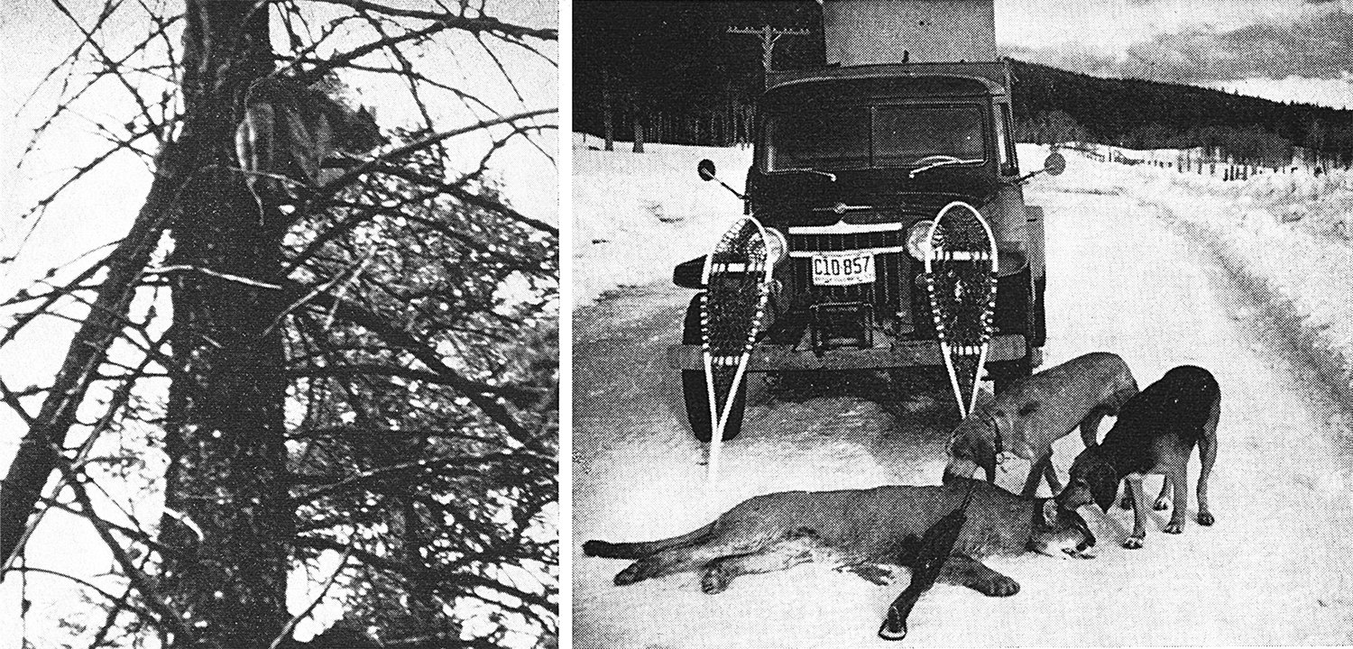 But a gaunt female with an empty belly may be good for a five or 10-mile chase through broken rimrock, rough canyons, thick timber the worst going she can find. And if dogs are put down on a cold track and the cat hears them coming and lines out with a good start, both the hounds and the hunter can expect a lot of exercise before they see that cougar in a tree.