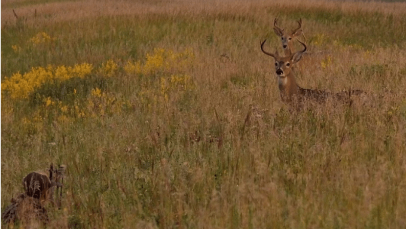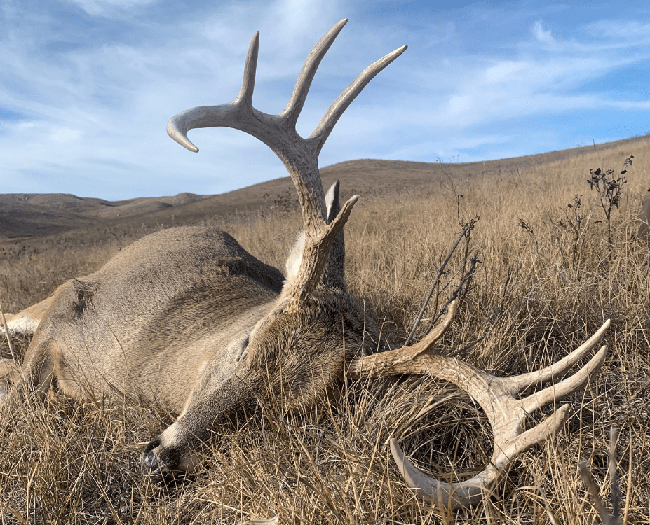 As the late afternoon approached, we had seen plenty of nice bucks off in the distance, but each one had six or seven does by their side. It was beginning to feel like the magic of the final day was running out. In a last-minute decision with about an hour and a half of daylight left, we decided to drive 20 minutes south to another walk-in spot where we had glassed bucks previously. As we approached our parking spot, we looked across the prairie. As if God himself had placed him there for us, there stood a buck: a big 3×3 tending a single doe.