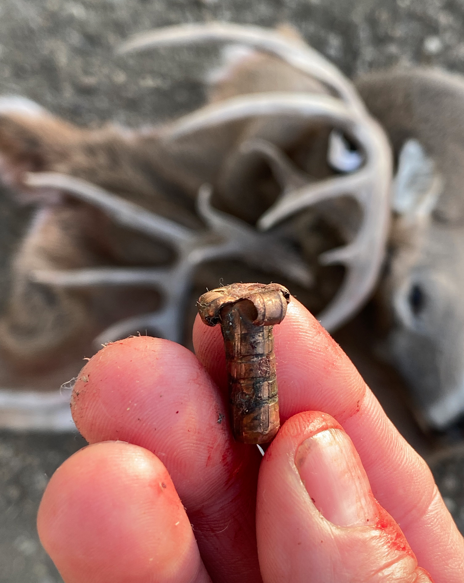 I waited for him to stop, and took the 236-yard shot. I was shooting a .280 Ackley Improved, and the 155-grain Federal Trophy Copper seemed to take a full minute to cross the field, but the hydraulic “thuuuump” of the bullet making contact confirmed the hit. The buck wheeled and ran back toward the timber. He made it 50 yards before falling dead.