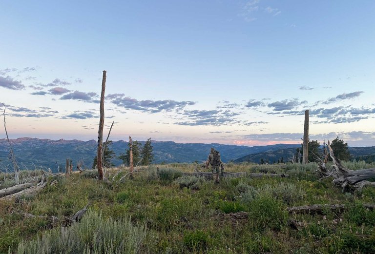 Once I trailed a Wyoming muley up a steep mountain, but then lost his track halfway up a rockslide. I had never been to that area before, but I decided to climb to the top. It was miserable going, with loose talus that slid away underfoot. I’d climb three steps and fall back two. Finally, after two hours of sweating and fighting my way up, I neared the top. I heard music coming from over the ridge.