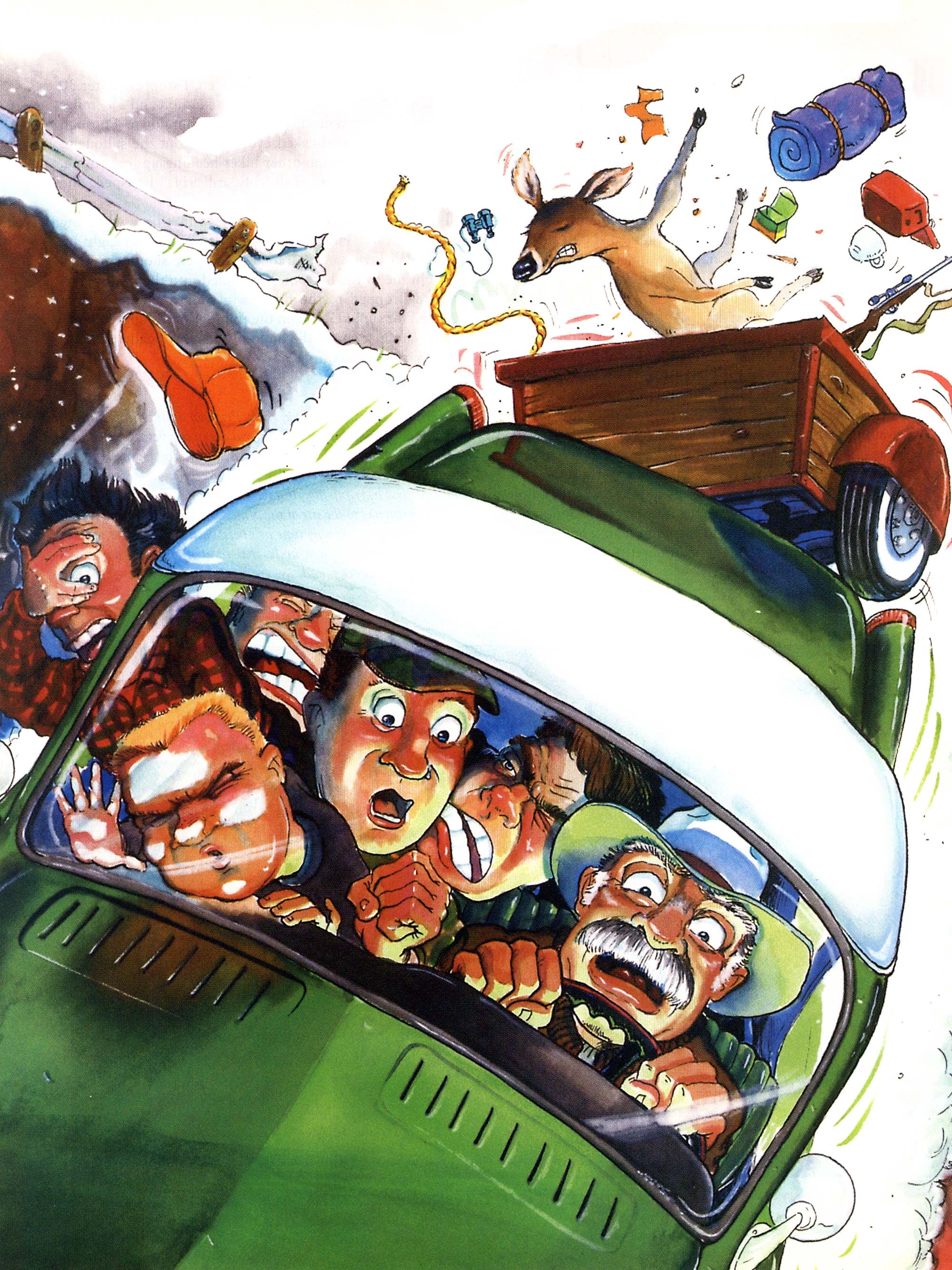 “As long as you don’t lock the door, sign us up,” one of our gang said. And so we spent the night warm and comfortable in the slammer; the only problem was that I lay awake all night figuring out how to tell my Dad the car was wrecked and the professor that his homemade trailer was history. We managed to salvage the doe, however.
