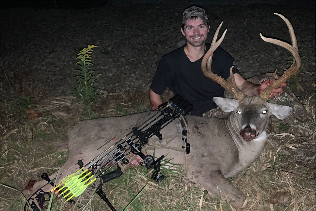 Mozurak let an arrow fly, hitting a perfect pass-through shot. The buck ran about 50 yards toward a road and went down.
