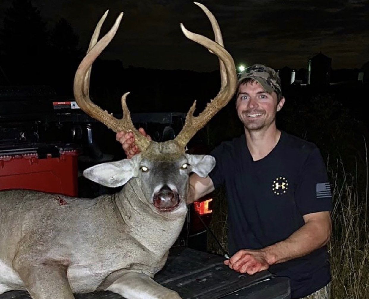 “It’s a really hard farm to hunt. There’s no pinch points, you’re just in thick, thick woods,” Mozurak says. “I didn’t see him [the season prior], I think he was wintering somewhere else. But I immediately got trail cam pictures proving he was still alive in the spring. I went out there in the summer, set out some more trail cameras, trying to get a good pattern on this deer.”
