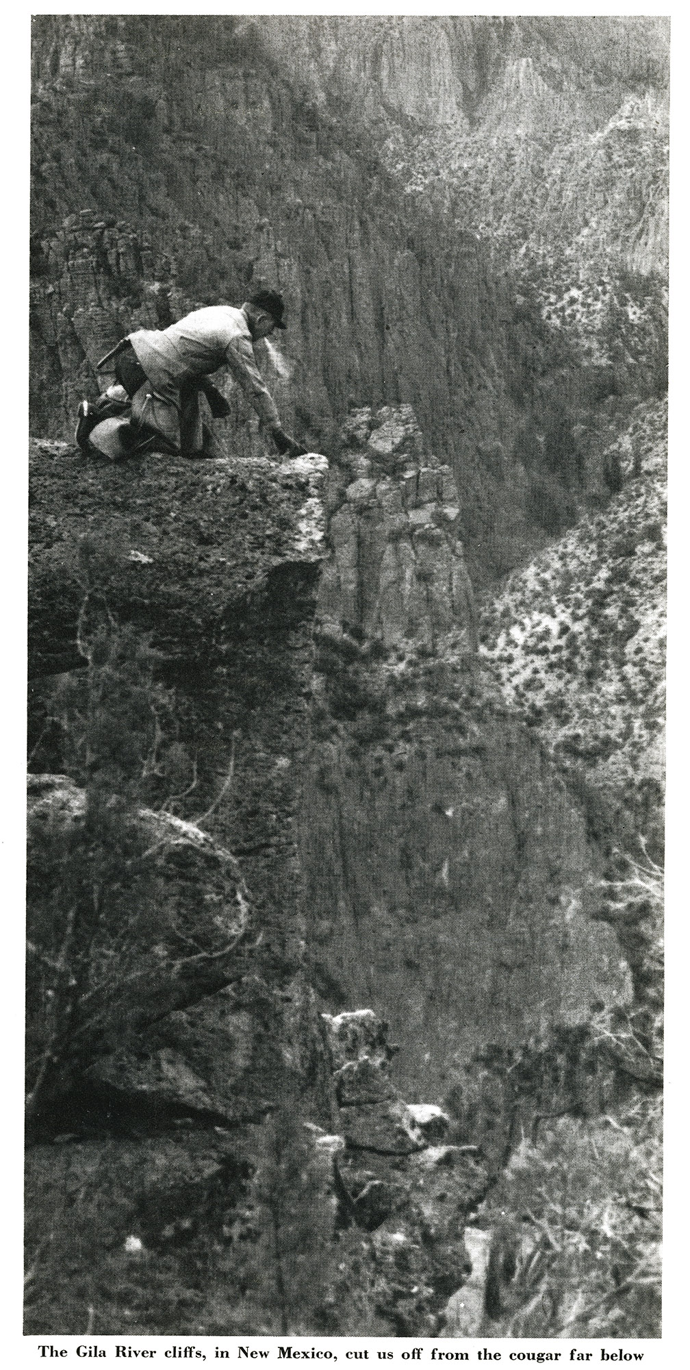 For seven days we’d been after an old male mountain lion, whose tracks George found two days before I came to the Gila. Ed Tucker, seated at the wheel of his mountain-geared truck, told me about him the afternoon we turned off the dirt road at Sapillo Creek and drove up a crooked canyon on a faint jeep trail. Following one series of canyons after another, we twisted upward for almost 30 miles to the continental divide, and then dropped off a series of mammoth ridges to the Gila River and the Heart Bar ranch, where George Hightower lives. Beyond the ranch, in the heart of the Gila National Forest, sprawled half a million acres of roadless, wild land, about as untamed as it was when Geronimo, the Apache chief, hid his warriors there.