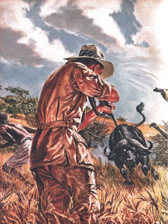 Dhooghe shouldered his .300 Weatherby and waited for the bull to reach 150 yards. With the bull quartering to him, he aimed in front of its shoulder and fired. The hand-loaded, 180-grain Nolser Accubond bullet took out the bull’s heart, and after trotting about 15 feet, the massive animal cartwheeled over and died.
