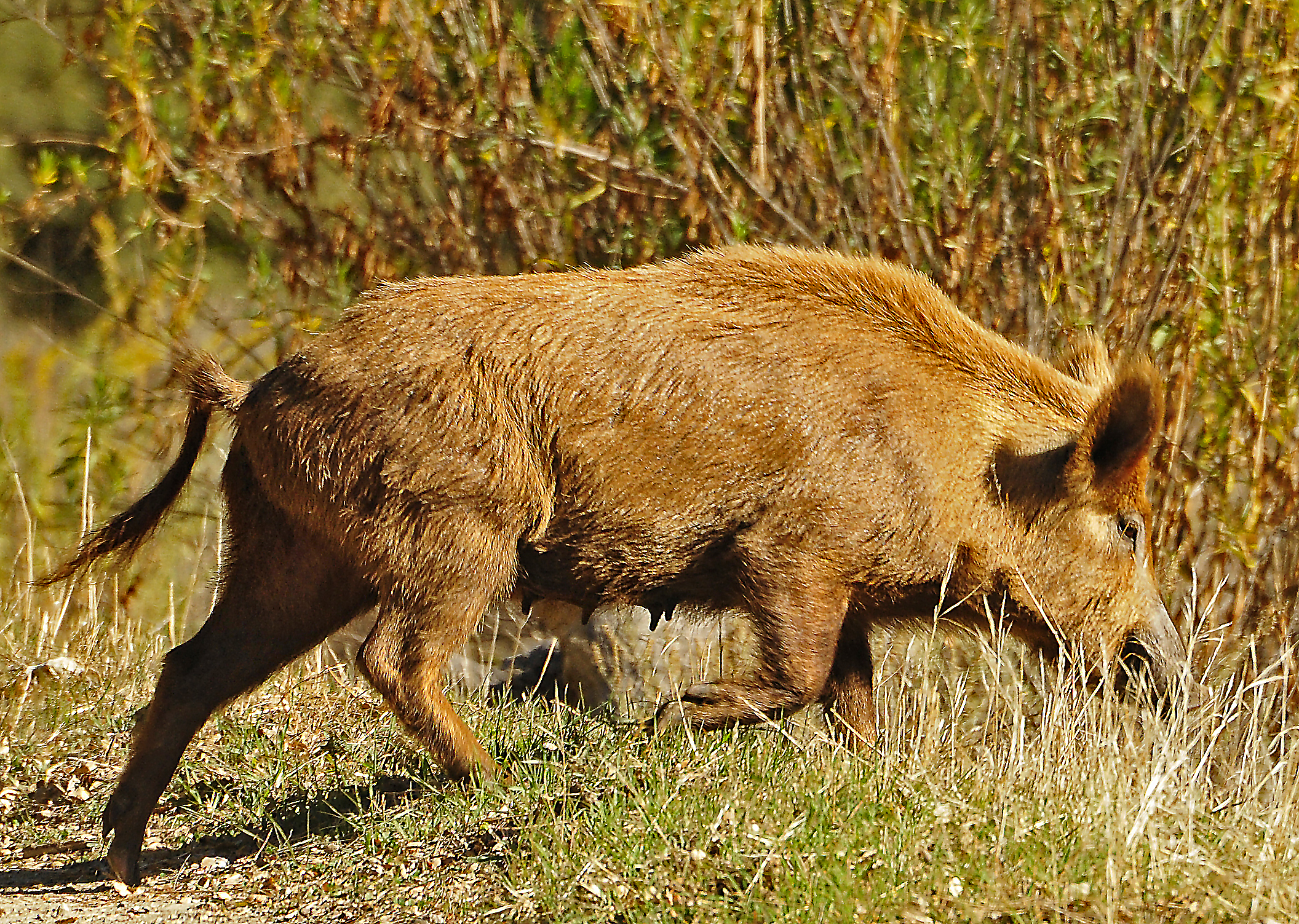This is a thrilling way to hunt. There are few things as attention-getting as sneaking up on a big hog in the thick stuff only to have that hog – and 30 others you didn’t see – stampede in all directions around you. Shorter-barreled, fast-handling guns are preferred for this style of hunting. The key is to detect the hogs before they detect you.
