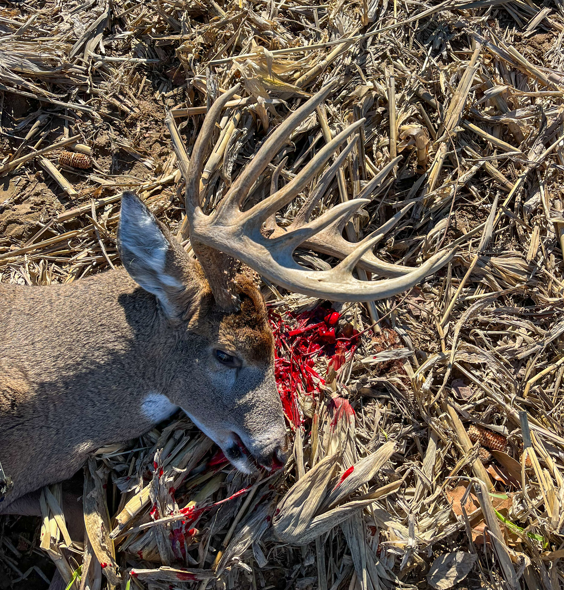 The buck ran another 30 yards, then dropped in the corn field. It has 13 scorable points and the antlers green-scored at 185 inches. After the 60-day drying period, Krick will have the buck officially measured.