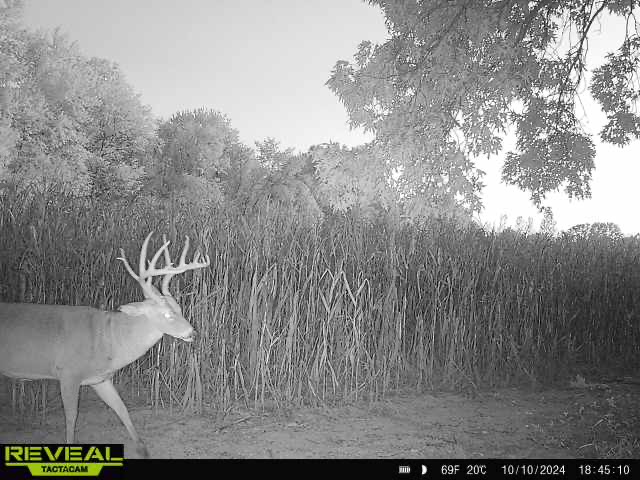 For the next eight months, Wynn never saw the buck, nor did he capture any photos of it. He thought perhaps another hunter had killed it. But in September 2024, he got photos of the buck in a standing corn field on his 30-acre hunting property.
