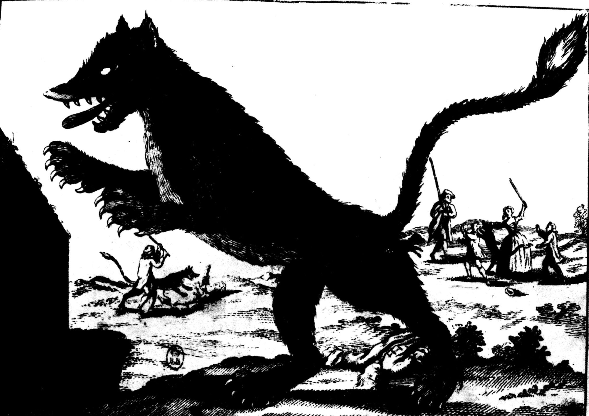 Witness descriptions of the Beast of Gévaudan varied widely. It was commonly reported to be hairy, with a black stripe running along the fur of its backbone. It had similarities to a giant wolf but was something altogether different. During the first year of attacks, it was often referred to as a “hyena” in newspapers. Over time it was also said to be a panther, or a tiger, or a lion, or a monkey, or a hybrid, or a mad man dressed in a wolf suit.