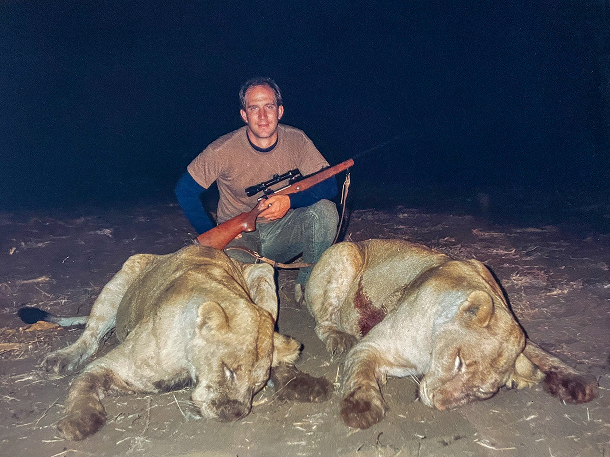 With Joel still manning the light and the e-caller blaring again, I slid into shooting position. Five minutes later, the two cats returned. One started eating. The other stood looking at the bait, broadside. The shot was simple and I took it, hitting tight behind the lion’s shoulder. Only afterward did I realize how relaxed, yet so very focused, I’d been.