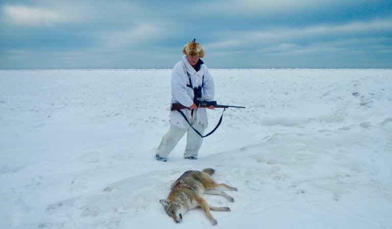 He didn’t see any deer for at least an hour after settling back into the ground blind. Then he started calling, using rattling antlers, and grunting. At one point, he accidentally whacked his hand with one of the antlers, which proved extra painful in the extreme cold. He sat on his hand for the next 15 minutes to ease the pain, about ready to give up.