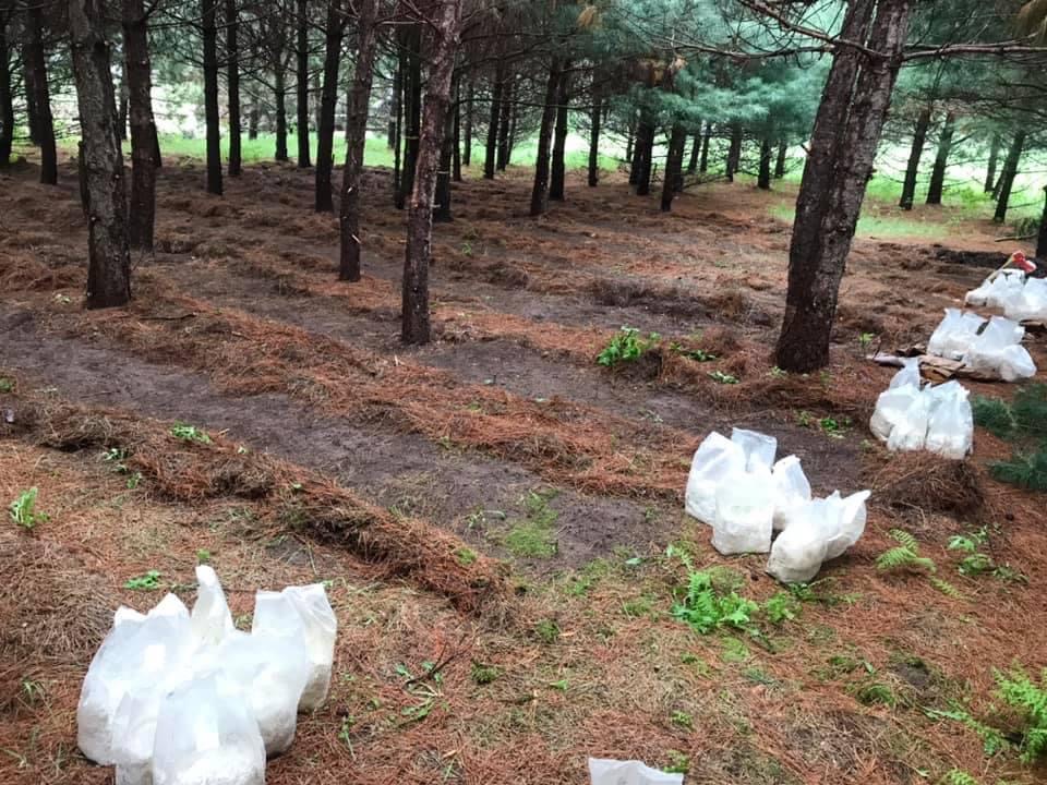 While most habitat managers are experimenting with smaller mushroom plots (50 to 100 square feet), you could certainly plant a much larger area if you’re willing to splurge on more spawn. If you like, says Williams, you can also over-seed most any size mushroom bed or the surrounding area with clover, corn (which creates shade for the spawn), or other food plot crops.
