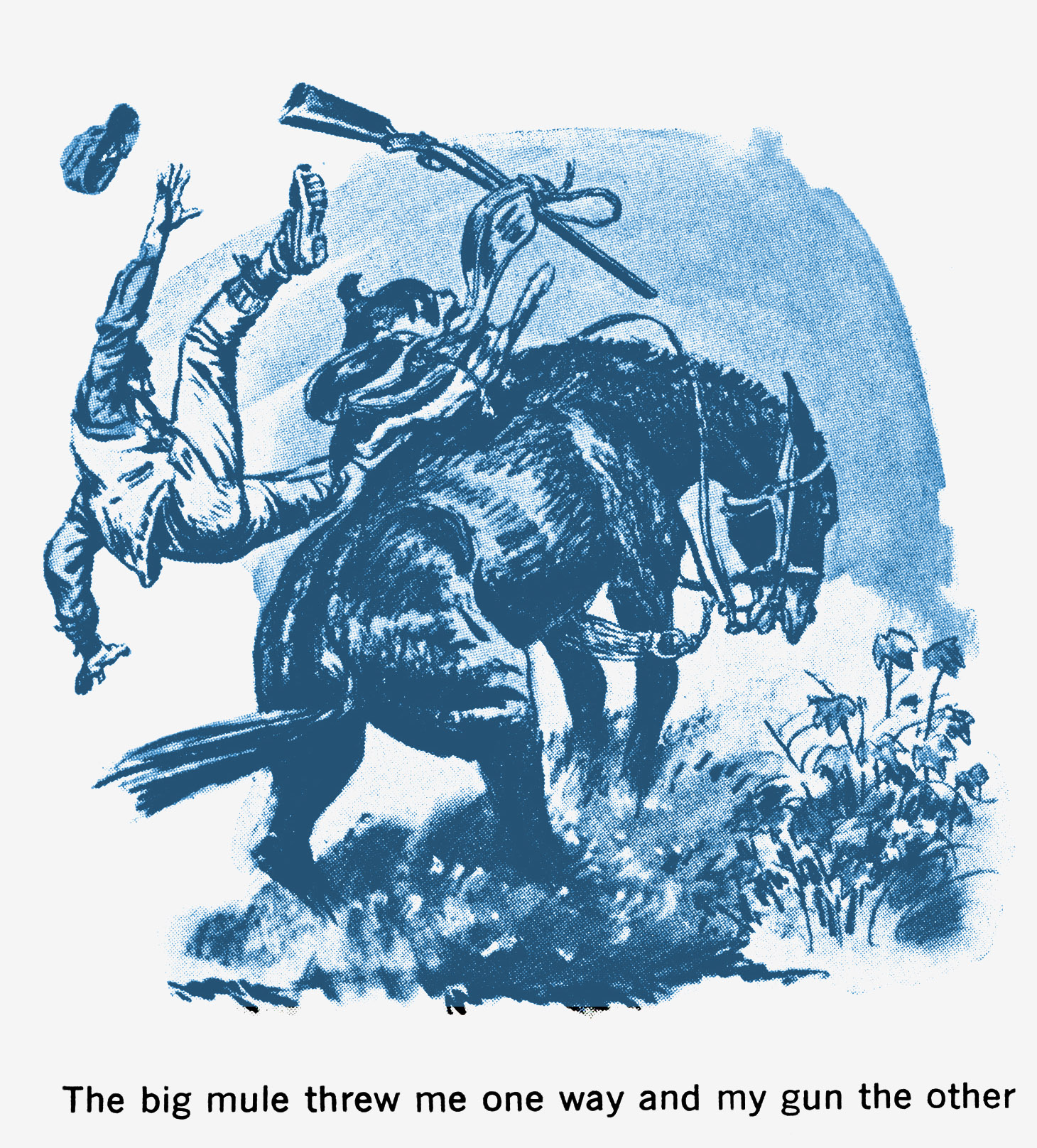 And as for killing quail, from horse back or mule, I’ll refer you to my old and valued friend Henry P. Davis of field-trial fame. Ask him about the morning he and I, mule-mounted, were bird hunting along 10-Mile Bayou at Lakeside. My saddle was tied on with only a piece of cord, and as I started to dismount for a shot the cord-stirrup broke and that tall red mule threw me one way and my gun the other, the gun so high that it fell and stuck up ward in a muddy cotton row.