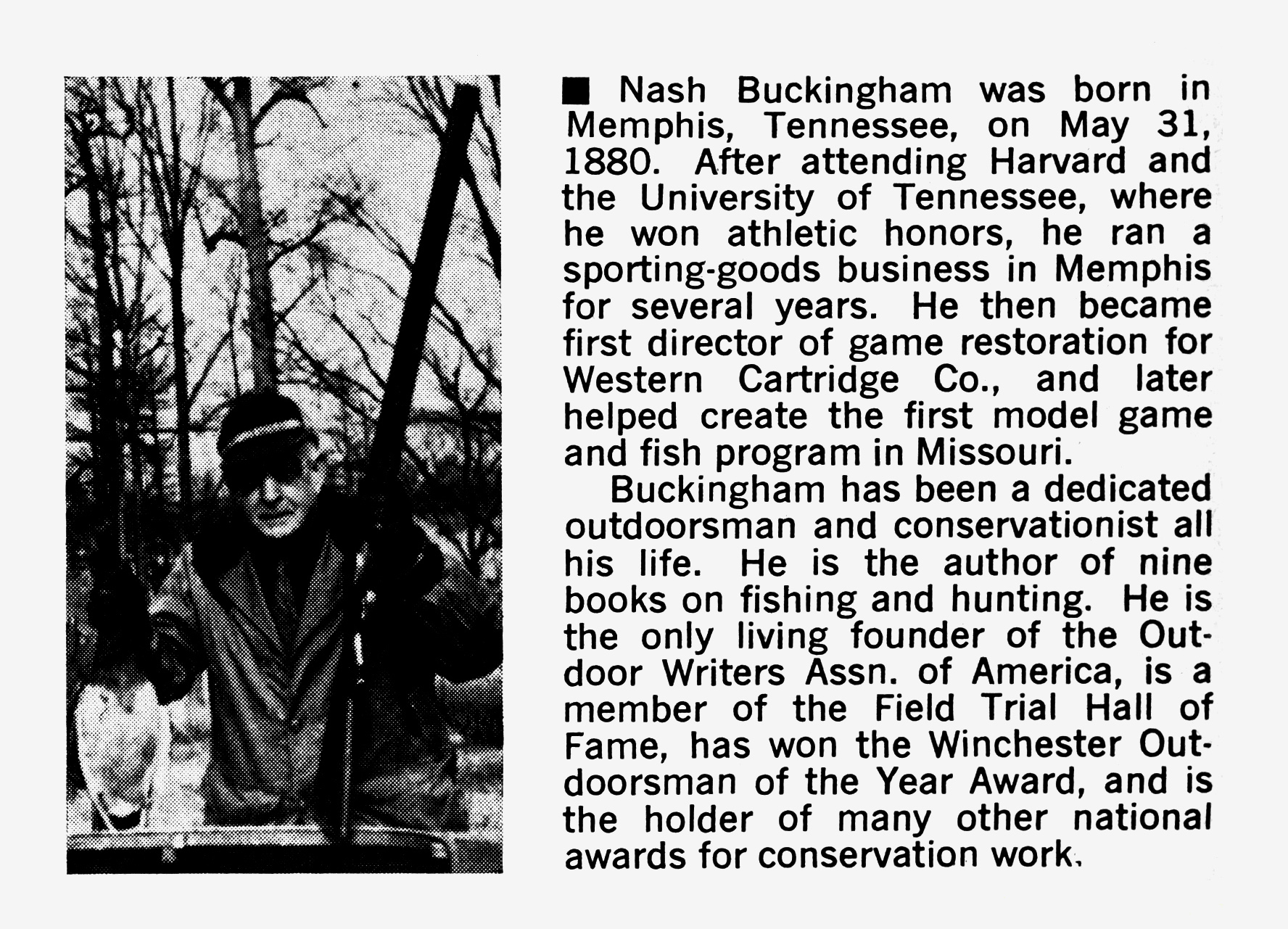 Dam Club near Tunica, Mississippi, for a wildfowl Big Shot. I have a picture of Hal Howard facing me from the bow of a duck boat and puffing on a cigarette. We had broken ice to reach a blind in the saw grass. Now and then one of us would rise and peep over the grass to see if any fowl were approaching.