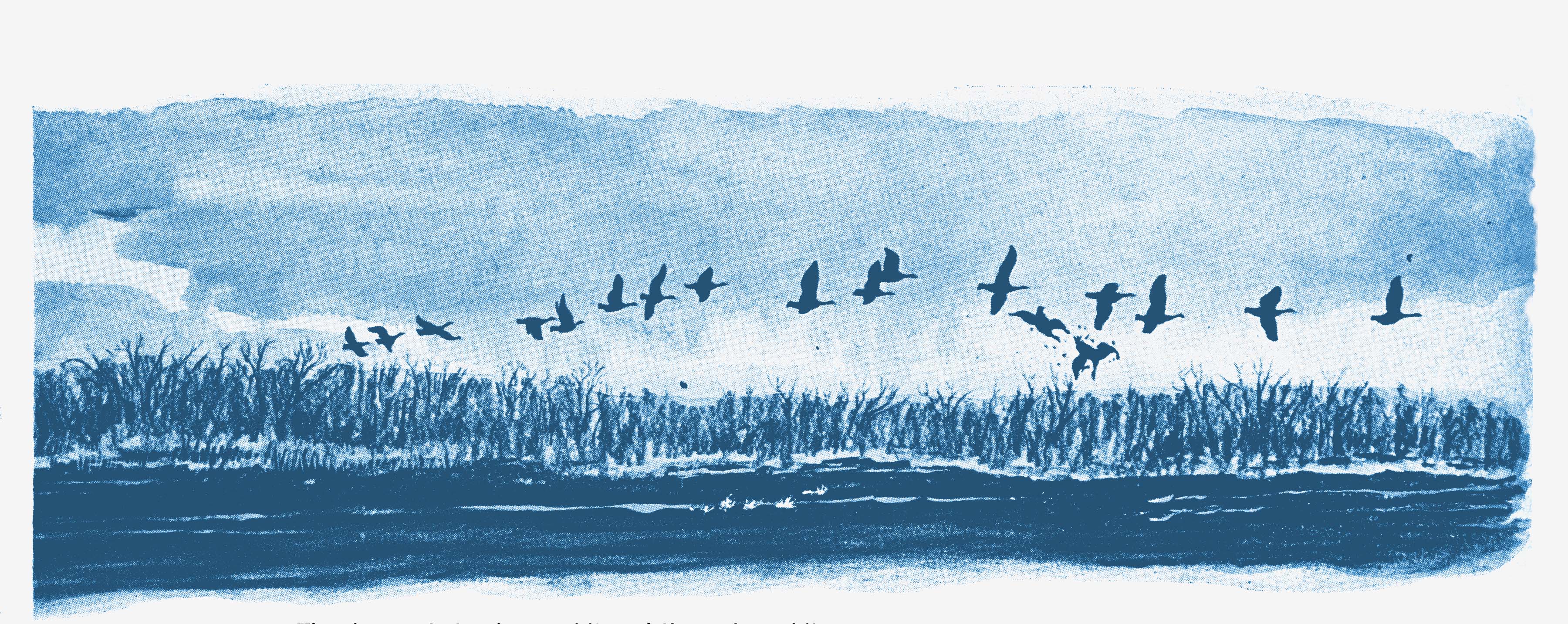 I half straightened, raised the big gun, and whistled piercingly. Up went an acre of geese, wave on wave. Leaning into the heavy load’s recoil, with my ankles locked in mud, I fired twice. The only response was two clicks. I lost my balance, whirled, and, to save things generally, sat down in the water.