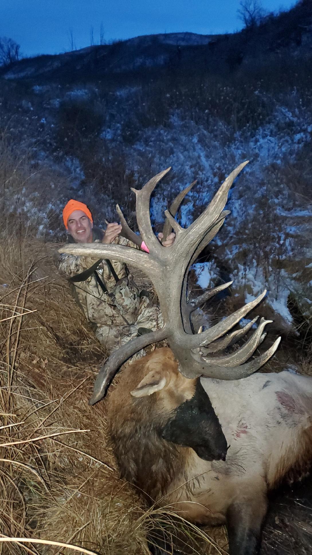 Lengyel joined Burtness and they walked to the dead bull, tagged it, then tried to move the animal, which was impossible. The hunters collectively have taken numerous elk, and estimated the bull weighed 1,000 pounds. It was later aged at 6.5 years old.